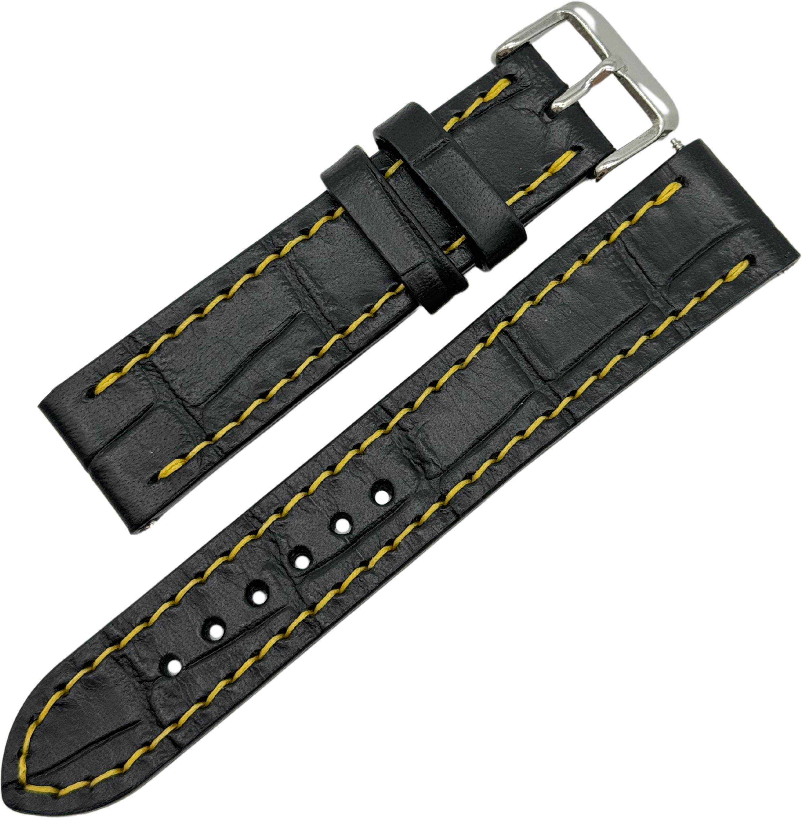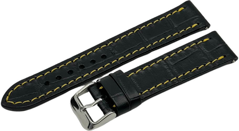 Материал ремешка для часов: кожа с тиснением рисунка крокодила. Цвет: черный. Ширина крепления, мм: 20