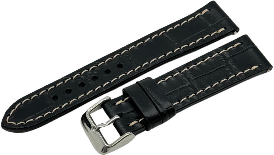 Материал ремешка для часов: кожа с тиснением рисунка крокодила. Цвет: черный. Ширина крепления, мм: 20