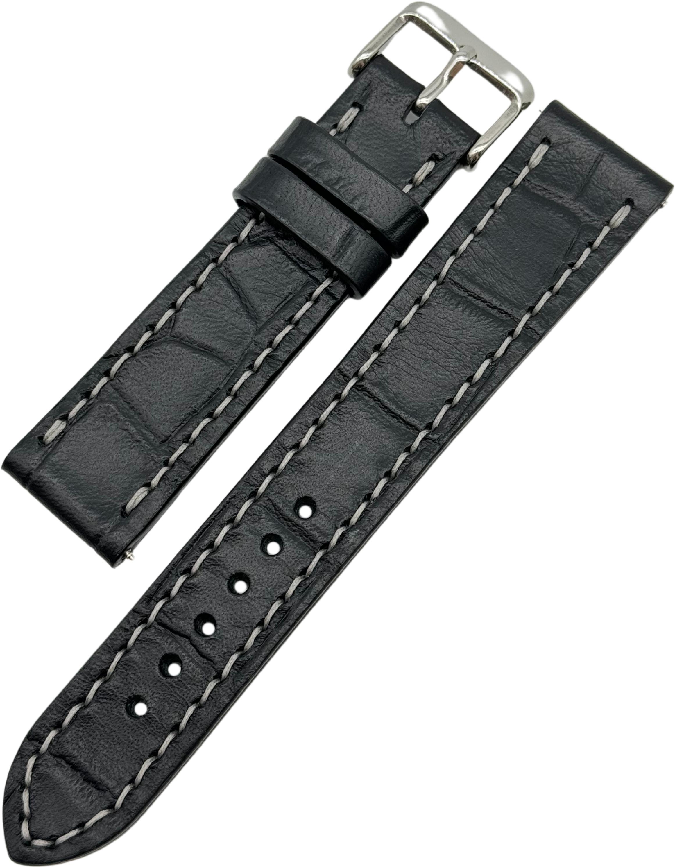 Материал ремешка для часов: кожа с тиснением рисунка крокодила. Цвет: черный. Ширина крепления, мм: 20