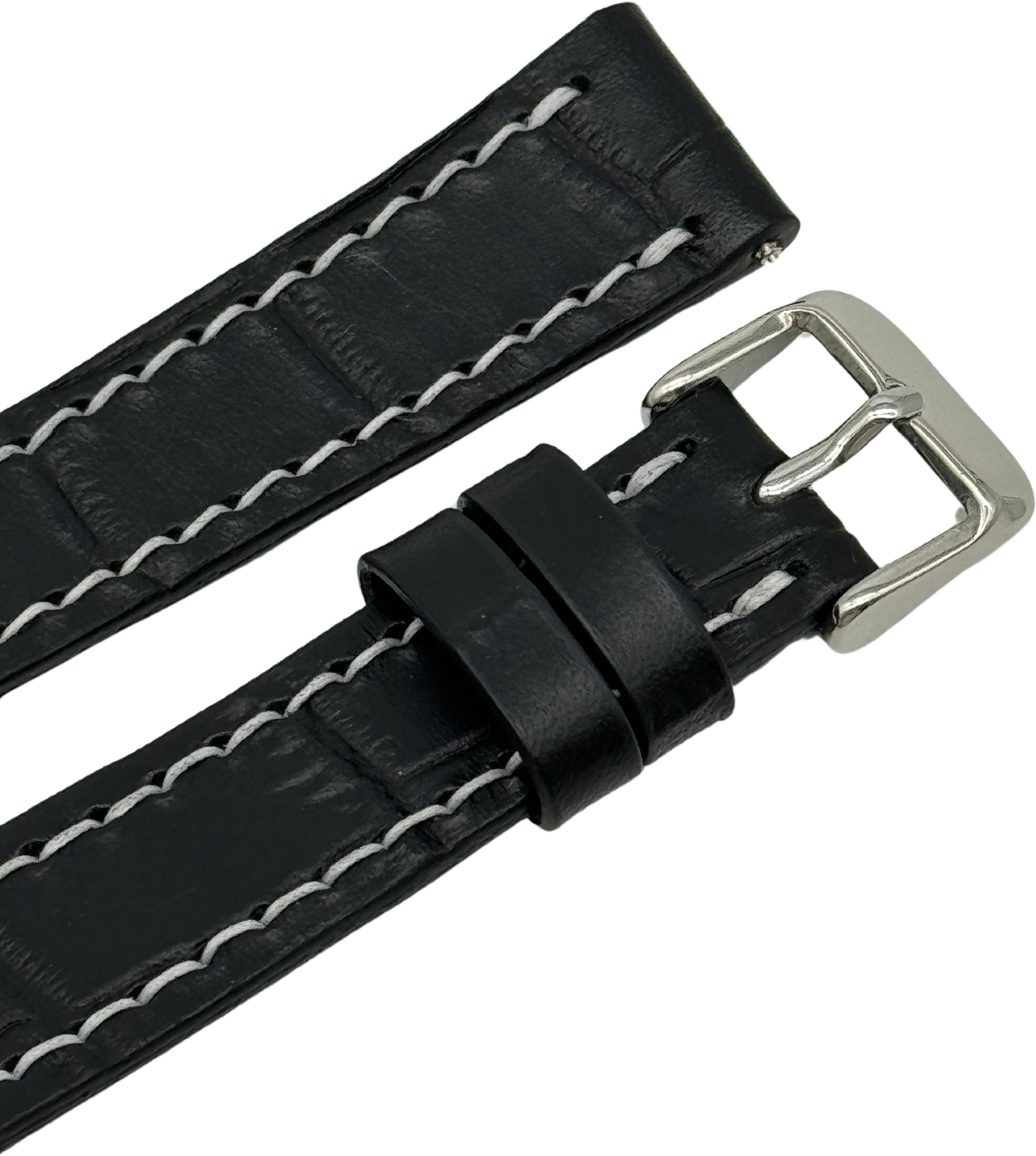 Материал ремешка для часов: кожа с тиснением рисунка крокодила. Цвет: черный. Ширина крепления, мм: 18