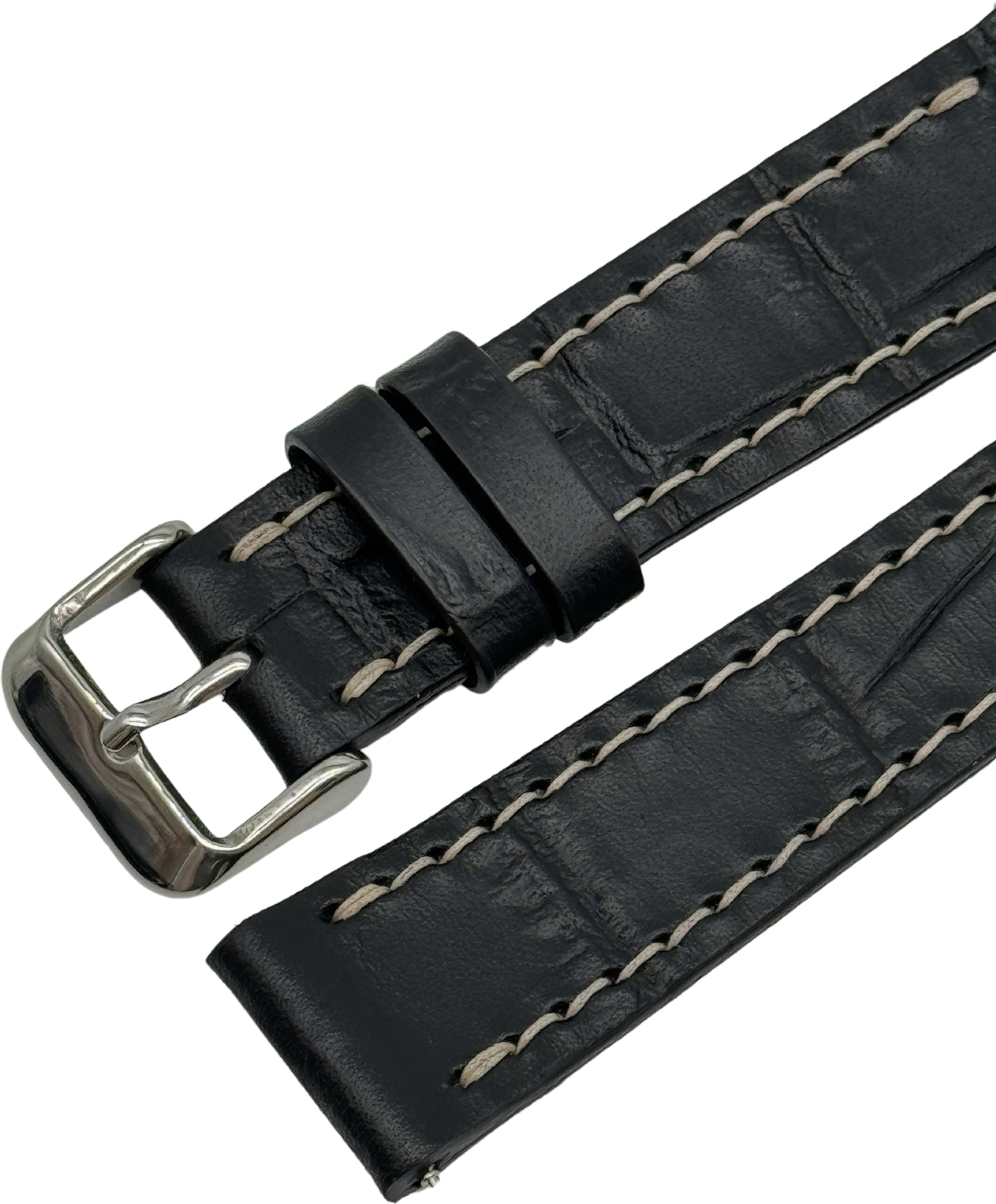 Материал ремешка для часов: кожа с тиснением рисунка крокодила. Цвет: черный. Ширина крепления, мм: 18