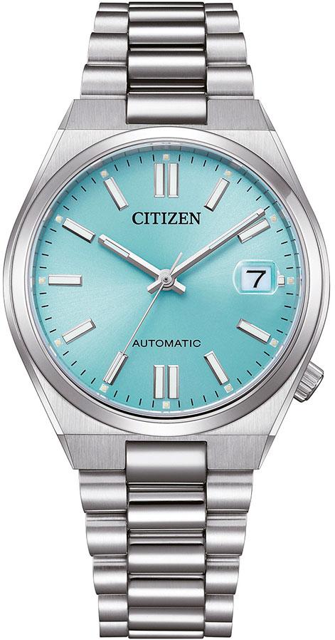 Мужские механические часы с автоподзаводом. Калибр механизма 8210-P21. Запас хода 42 часа. Центральные часовая, минутная и секундная стрелки. Окошко даты с увеличительным стеклом в позиции 3 часов. Голубой циферблат. Круглый корпус выполнен из нержавеющей стали. Диаметр корпуса составляет 37 мм, толщина 12 мм. Рифленая заводная головка находится в положении 4 часа. Завинчивающаяся прозрачная задняя крышка. Браслет с раскладывающейся застежкой. Устойчивое к возникновению царапин сапфировое стекло с антибликовым покрытием. Водостойкость 50 метров (5 АТМ/bar): выдерживают мытье рук, попадание крупных капель. Вес: 120 г.