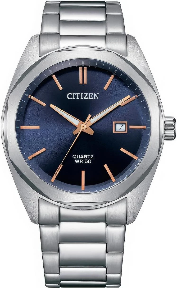 Мужские наручные часы Citizen Basic BI5110-54H. Точный кварцевый механизм с аналоговой индикацией. Браслет из нержавеющей стали. Браслет из нержавеющей стали. Прочное, устойчивое к царапинам минеральное стекло защищает часы от повреждений. На циферблате отображается текущее число месяца. Часы являются водонепроницаемыми до 5 Бар. Цвет циферблата: Серебристый. Цвет корпуса: Синий. На стрелки и отметки нанесен светонакопительный состав, благодаря этому считывать информацию с циферблата возможно и в темноте. Толщина: 12 мм. Гарантия: 2 года.