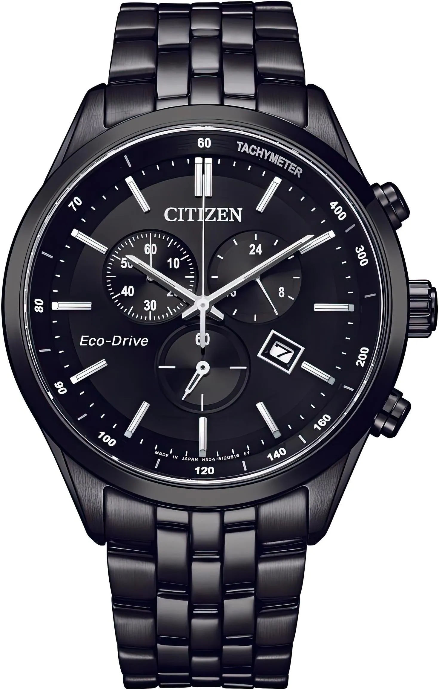 Мужские наручные часы Citizen Eco Drive AT2145-86E. Точный кварцевый механизм с аналоговой индикацией. Браслет из нержавеющей стали. Функция хронографа. Отображение времени возможно в 12-часовом или 24-часовом формате. Браслет из нержавеющей стали. Сапфировое стекло. Искусственно изготовленное стекло с высокой прочностью и устойчивостью к царапинам. На циферблате отображается текущее число месяца. Часы являются водонепроницаемыми до 10 Бар. Цвет циферблата: Черный. Цвет корпуса: Черный. Толщина: 10 мм. Гарантия: 2 года.