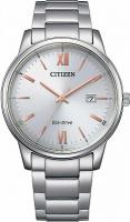 Мужские часы Citizen BM6978-77A с японским кварцевым механизмом и технологией Eco-Drive работают на солнечной энергии без замены батареи. Модель с серебристым циферблатом, украшенным розово-золотыми штрихами и римскими цифрами, дополнена окошком даты на позиции 3 часа. Стальной корпус диаметром 40 мм оснащен сапфировым стеклом, устойчивым к царапинам, а водонепроницаемость WR50 обеспечивает защиту от брызг и дождя.
