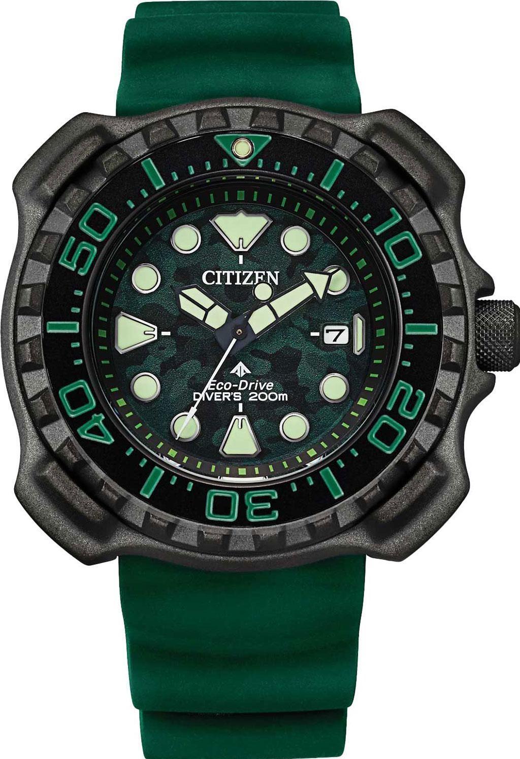 Мужские наручные часы Citizen Promaster BN0228-06W. Точный кварцевый механизм с аналоговой индикацией. Полимерный ремешок. Натуральный полимерный материал является идеальным для изготовления ремешка благодаря своей чрезвычайной прочности и гибкости. Ударопрочная конструкция часов защищает от ударов и вибрации. Солнечная батарейка. Солнечная подзаряжающаяся батарейка обеспечивает питание часов для работы. Браслет из нержавеющей стали. Прочное, устойчивое к царапинам минеральное стекло защищает часы от повреждений. На циферблате отображается текущее число месяца. Часы являются водонепроницаемыми до 20 Бар. Цвет циферблата: Черный. Цвет корпуса: Зеленый. Цвет корпуса: Черный. На стрелки и отметки нанесен светонакопительный состав, благодаря этому считывать информацию с циферблата возможно и в темноте. Толщина: 11 мм. Гарантия: 2 года.