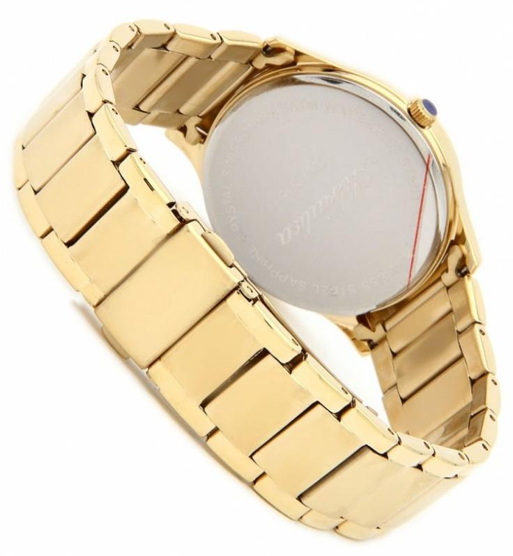 • Корпус из высококачественного стального сплава 316L с высокими антикоррозийными свойствами имеет PVD-покрытие цвета золота.