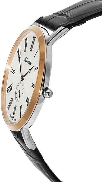 Точный кварцевый механизм. • Точность хода не хуже -10 +15 сек./в месяц. • Смещенная секундная стрелка. • Минеральное стекло устойчивое к возникновению царапин. • Корпус из высококачественного стального сплава 316L с высокими антикоррозийными свойствами. • Кожаный ремешок. • Водозащита до 3 АТМ.