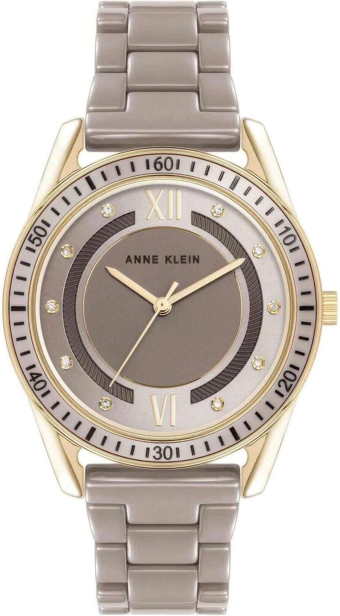 Женские наручные часы Anne Klein Ceramic 5068GPTP. Точный кварцевый механизм с аналоговой индикацией. Керамический браслет. Латунный браслет. Прочное, устойчивое к царапинам минеральное стекло защищает часы от повреждений. Часы являются водонепроницаемыми до 3 Бар. Цвет циферблата: Серый. Цвет циферблата: Желтое золото. Цвет корпуса: Серый. Толщина: 8 мм. Гарантия: 2 года.
