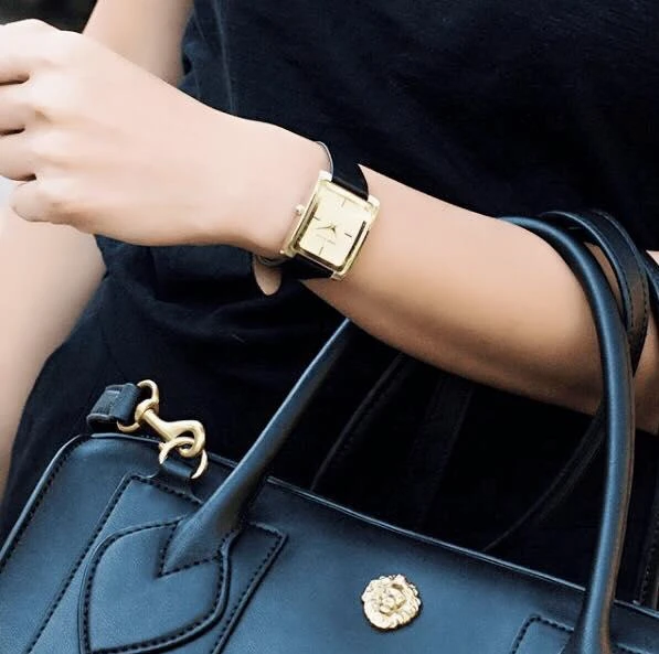Женские наручные часы с центральной секундной стрелкой. Прямоугольный корпус выполнен из нержавеющей стали со стойким PVD покрытием, на кожаном ремешке. Минеральное стекло. Точный кварцевый механизм.