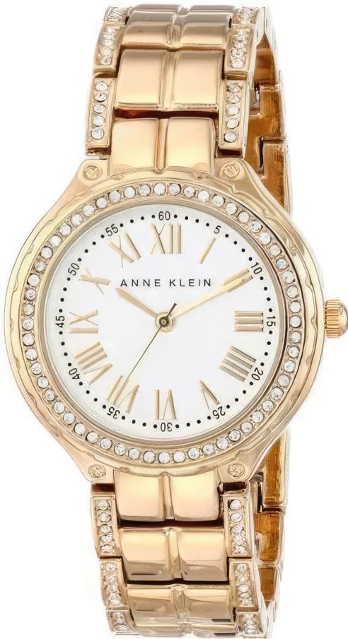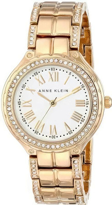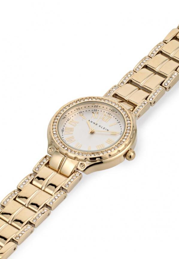 Женские наручные часы с аналоговой индикацией. Корпус из нержавеющей стали с PVD-покрытием цвета золота. Инкрустация кристаллами Swarovski. Механизм кварцевый с центральной секундной стрелкой.
