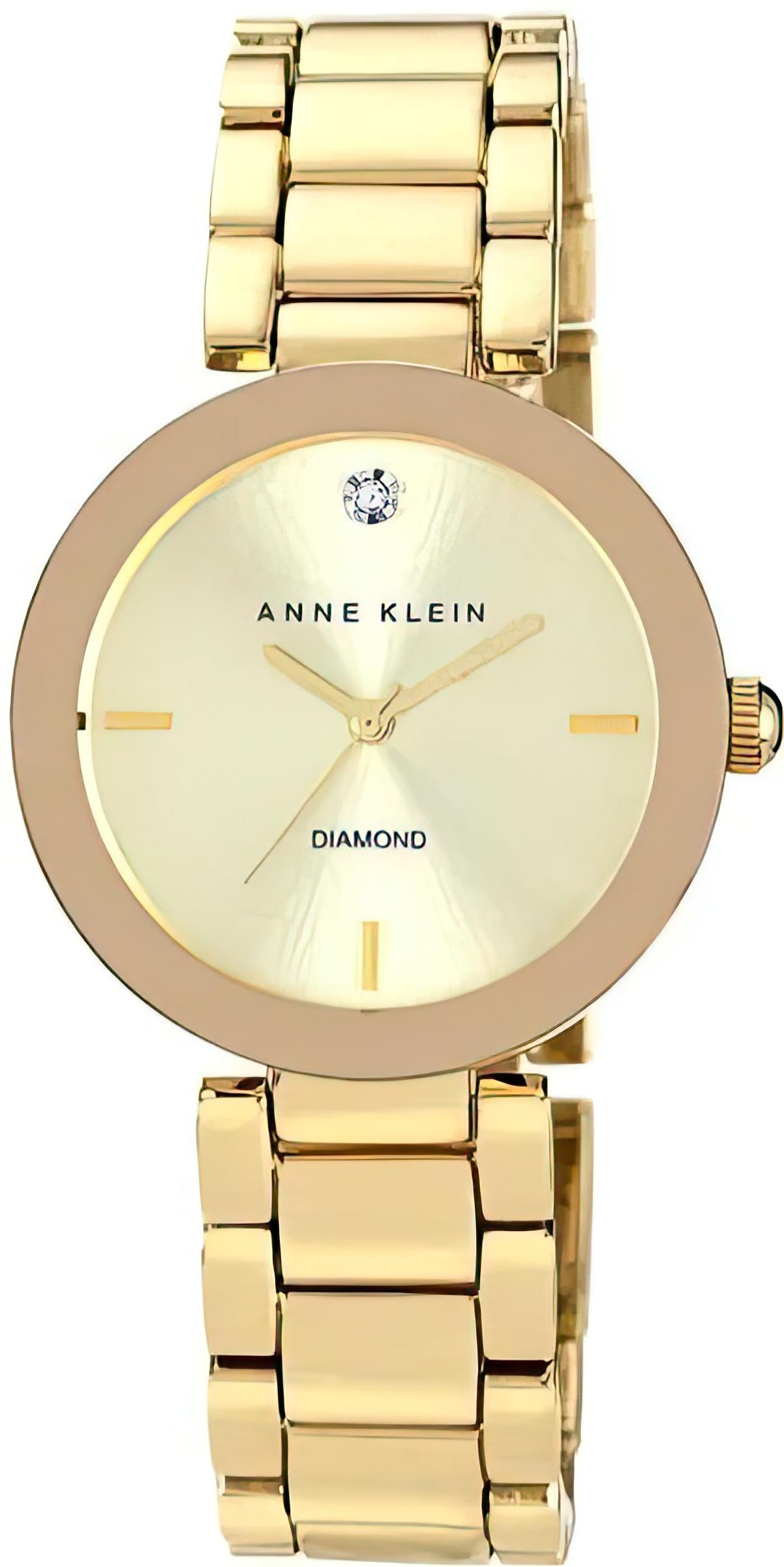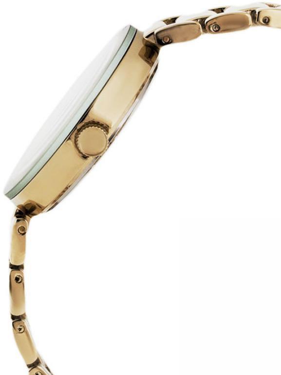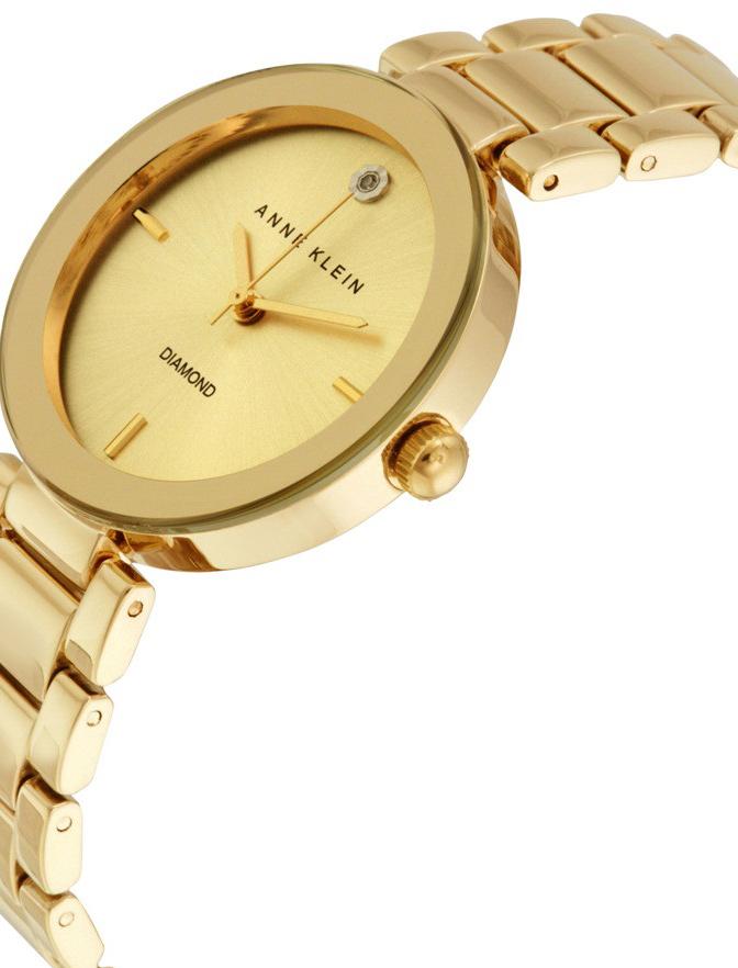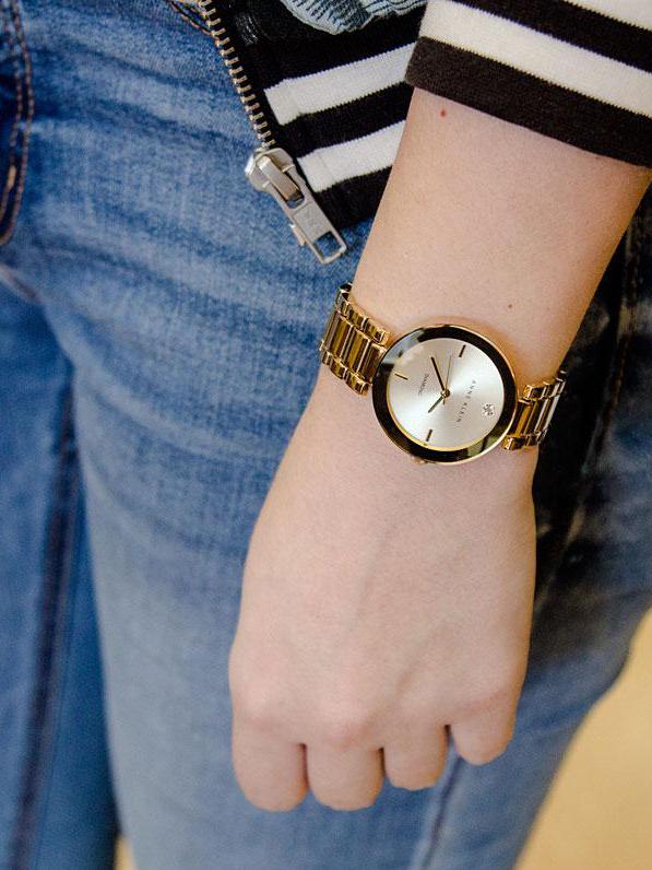 Наручные женские кварцевые часы с аналоговой индикацией. Циферблат инкрустирован бриллиантом. Стальные браслет и корпус покрыты PVD-составом цвета золота.