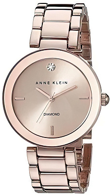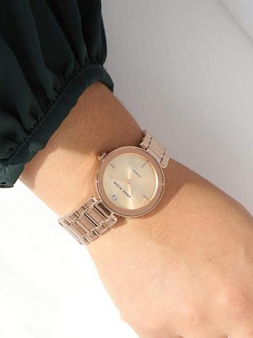 Наручные женские кварцевые часы с аналоговой индикацией. Стальные браслет и корпус покрыты PVD-составом цвета розового золота.
