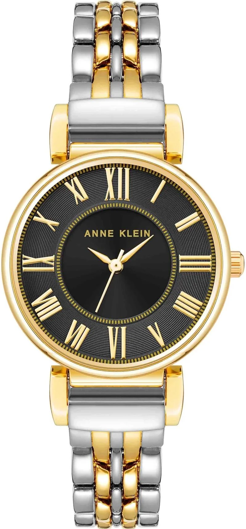 Женские наручные часы Anne Klein Daily 2159BKTT. Точный кварцевый механизм с аналоговой индикацией. Браслет из нержавеющей стали. Браслет из нержавеющей стали. Прочное, устойчивое к царапинам минеральное стекло защищает часы от повреждений. Часы являются водонепроницаемыми до 3 Бар. Цвет циферблата: Серебристый. Цвет циферблата: Желтое золото. Цвет корпуса: Черный. Толщина: 8 мм. Гарантия: 2 года.