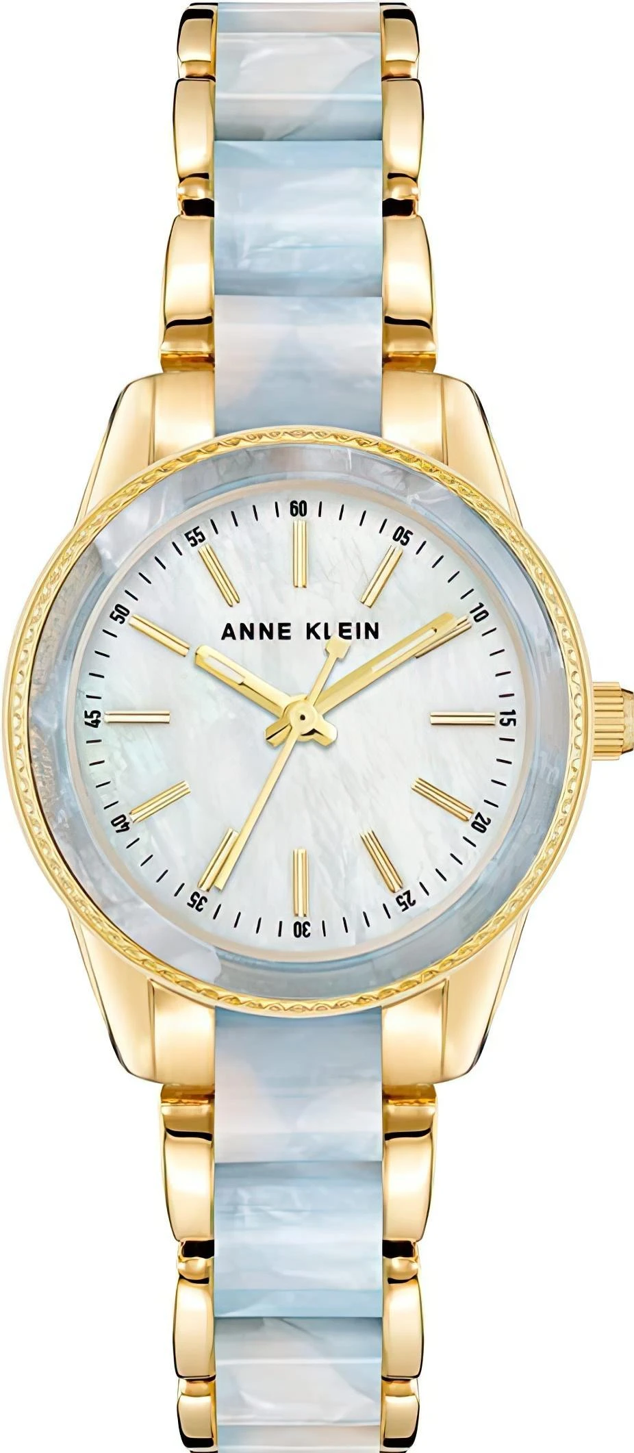 Женские наручные часы Anne Klein Plastic 3212LBGB. Точный кварцевый механизм с аналоговой индикацией. Полимерный ремешок. Натуральный полимерный материал является идеальным для изготовления ремешка благодаря своей чрезвычайной прочности и гибкости. Браслет из нержавеющей стали. Браслет из нержавеющей стали. Прочное, устойчивое к царапинам минеральное стекло защищает часы от повреждений. Часы являются водонепроницаемыми до 3 Бар. Цвет циферблата: Желтое золото. Цвет корпуса: Белый. Цвет корпуса: Перламутровый. На стрелки и отметки нанесен светонакопительный состав, благодаря этому считывать информацию с циферблата возможно и в темноте. Толщина: 9 мм. Гарантия: 2 года.