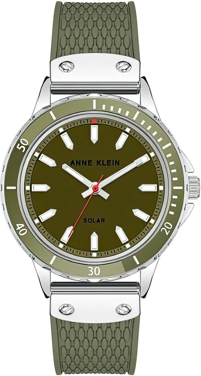 Женские наручные часы Anne Klein Plastic 3891GNGN. Точный кварцевый механизм с аналоговой индикацией. Полимерный ремешок. Натуральный полимерный материал является идеальным для изготовления ремешка благодаря своей чрезвычайной прочности и гибкости. Солнечная батарейка. Солнечная подзаряжающаяся батарейка обеспечивает питание часов для работы. Браслет из нержавеющей стали. Прочное, устойчивое к царапинам минеральное стекло защищает часы от повреждений. Часы являются водонепроницаемыми до 3 Бар. Цвет циферблата: Зеленый. Цвет циферблата: Серебристый. Цвет корпуса: Зеленый. На стрелки и отметки нанесен светонакопительный состав, благодаря этому считывать информацию с циферблата возможно и в темноте. Толщина: 12 мм. Гарантия: 2 года.