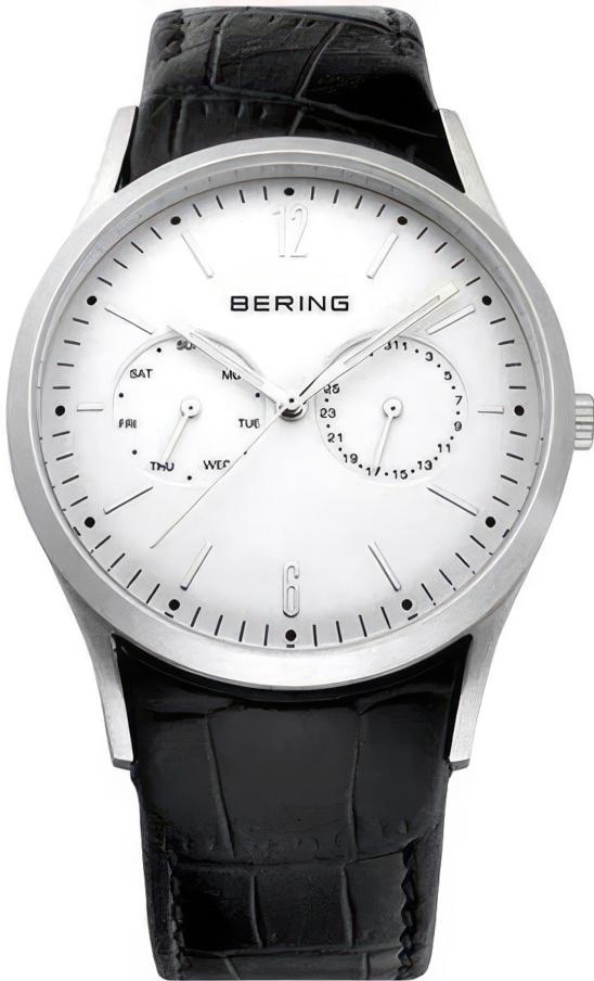 Мужские наручные часы Bering Classic 11839-404. Точный кварцевый механизм с аналоговой индикацией. Корпус изготовлен из высококачественной нержавеющей стали 316L с высокими антикоррозийными свойствами. На стрелки и отметки нанесен светонакопительный состав, благодаря этому считывать информацию с циферблата возможно и в темноте. На циферблате отображается текущее число месяца и день недели. Ремешок изготовлен из кожи. Прочное, устойчивое к царапинам минеральное стекло защищает часы от повреждений. Часы являются водонепроницаемыми до 5 Бар. Цвет циферблата: Белый. Ширина (с заводной головкой): 39мм. Толщина: 7мм. Гарантия: 3 года.