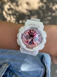 Женские спортивные часы розового цвета в пластиковом корпусе и браслете