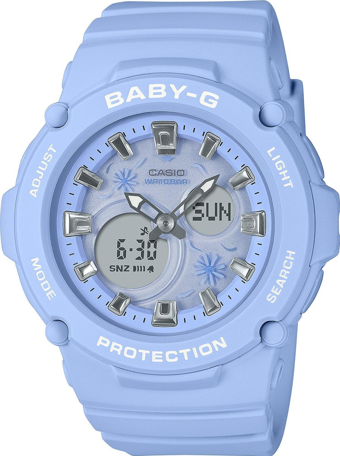 Женские наручные часы Casio Baby-G BGA-270FL-2A. Точный кварцевый механизм с аналоговой индикацией. Полимерный ремешок. Натуральный полимерный материал является идеальным для изготовления ремешка благодаря своей чрезвычайной прочности и гибкости. После настройки автоматический календарь всегда отображает точную дату. Аккумулятор обеспечивает часы достаточным питанием приблизительно на 3 года. Функция будильника. Функция хронографа. Отображение текущего времени в основных городах и конкретных областях по всему миру. Функция таймера. Таймеры обратного отсчета напомнят Вам о текущих или особенных событиях, издав звуковой сигнал в установленное время. Ударопрочная конструкция часов защищает от ударов и вибрации. Отображение времени возможно в 12-часовом или 24-часовом формате. Полимерный ремешок. Натуральный полимерный материал является идеальным для изготовления ремешка благодаря своей чрезвычайной прочности и гибкости. Прочное, устойчивое к царапинам минеральное стекло защищает часы от повреждений. На циферблате отображается текущее число, месяц и день недели. Часы являются водонепроницаемыми до 10 Бар. Цвет циферблата: Фиолетовый. Цвет корпуса: Фиолетовый. Светодиодная подсветка. На стрелки и отметки нанесен светонакопительный состав, благодаря этому считывать информацию с циферблата возможно и в темноте. Толщина: 13 мм. Гарантия: 2 года.