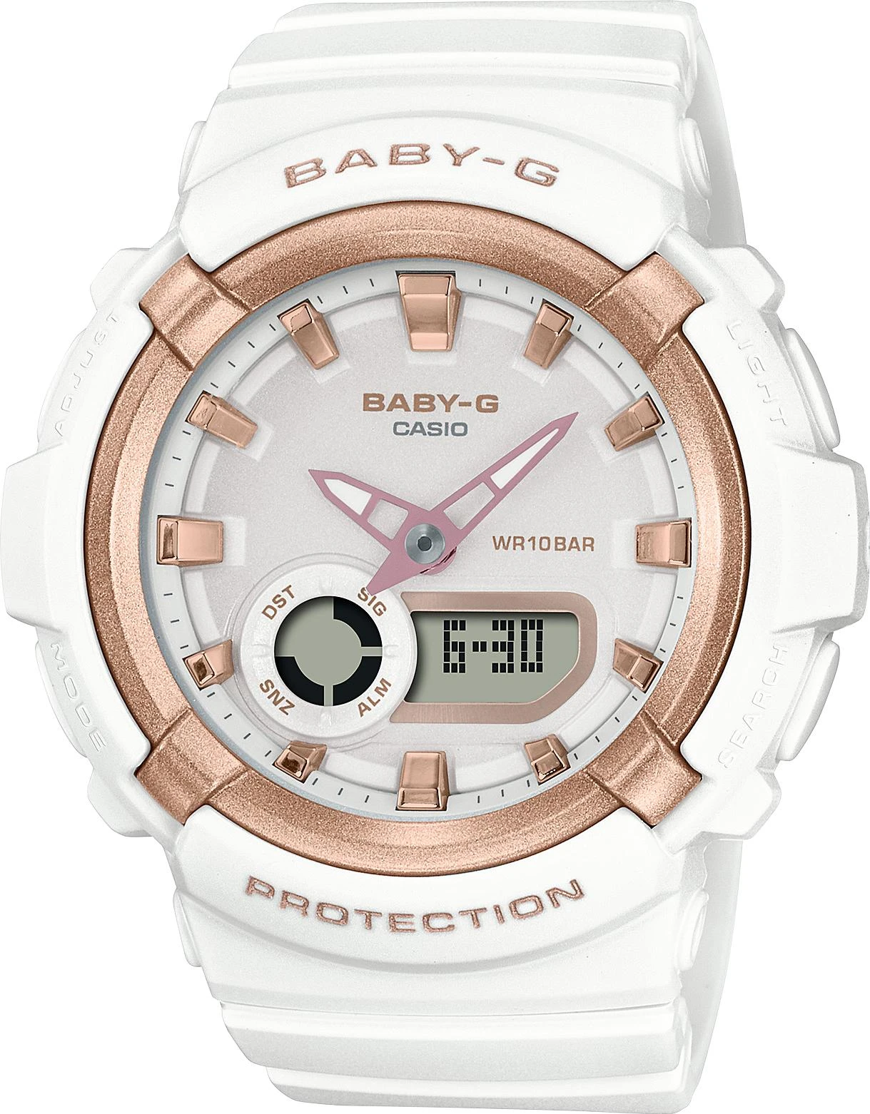 Женские наручные часы Casio Baby-G BGA-280BA-7A. Точный кварцевый механизм с аналого-цифровой индикацией. Полимерный ремешок. Натуральный полимерный материал является идеальным для изготовления ремешка благодаря своей чрезвычайной прочности и гибкости. После настройки автоматический календарь всегда отображает точную дату. Аккумулятор обеспечивает часы достаточным питанием приблизительно на 3 года. Функция будильника. Функция хронографа. Отображение текущего времени в основных городах и конкретных областях по всему миру. Функция таймера. Таймеры обратного отсчета напомнят Вам о текущих или особенных событиях, издав звуковой сигнал в установленное время. Ударопрочная конструкция часов защищает от ударов и вибрации. Отображение времени возможно в 12-часовом или 24-часовом формате. Полимерный ремешок. Натуральный полимерный материал является идеальным для изготовления ремешка благодаря своей чрезвычайной прочности и гибкости. Прочное, устойчивое к царапинам минеральное стекло защищает часы от повреждений. На циферблате отображается текущее число, месяц и день недели. Часы являются водонепроницаемыми до 10 Бар. Цвет циферблата: Белый. Цвет циферблата: Розовое золото. Цвет корпуса: Белый. Светодиодная подсветка. На стрелки и отметки нанесен светонакопительный состав, благодаря этому считывать информацию с циферблата возможно и в темноте. Толщина: 15 мм. Гарантия: 2 года.
