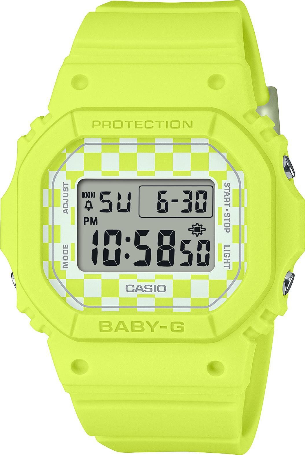 Женские наручные часы Casio Baby-G BGD-565GS-9E. Точный кварцевый механизм с цифровой индикацей. Полимерный ремешок. Натуральный полимерный материал является идеальным для изготовления ремешка благодаря своей чрезвычайной прочности и гибкости. Ударопрочная конструкция часов защищает от ударов и вибрации. Функция будильника. Функция таймера. Таймеры обратного отсчета напомнят Вам о текущих или особенных событиях, издав звуковой сигнал в установленное время. Для подсветки дисплея используется светодиод, а так же имеет функцию автоматического включения подсветки, если Вы наклоните часы к своему лицу. Ежечасный сигнал. После настройки автоматический календарь всегда отображает точную дату. Полимерный ремешок. Натуральный полимерный материал является идеальным для изготовления ремешка благодаря своей чрезвычайной прочности и гибкости. Прочное, устойчивое к царапинам минеральное стекло защищает часы от повреждений. На циферблате отображается текущее число, месяц и день недели. Часы являются водонепроницаемыми до 10 Бар. Цвет циферблата: Желтый. Цвет корпуса: Желтый. Светодиодная подсветка. Толщина: 11 мм. Гарантия: 2 года.