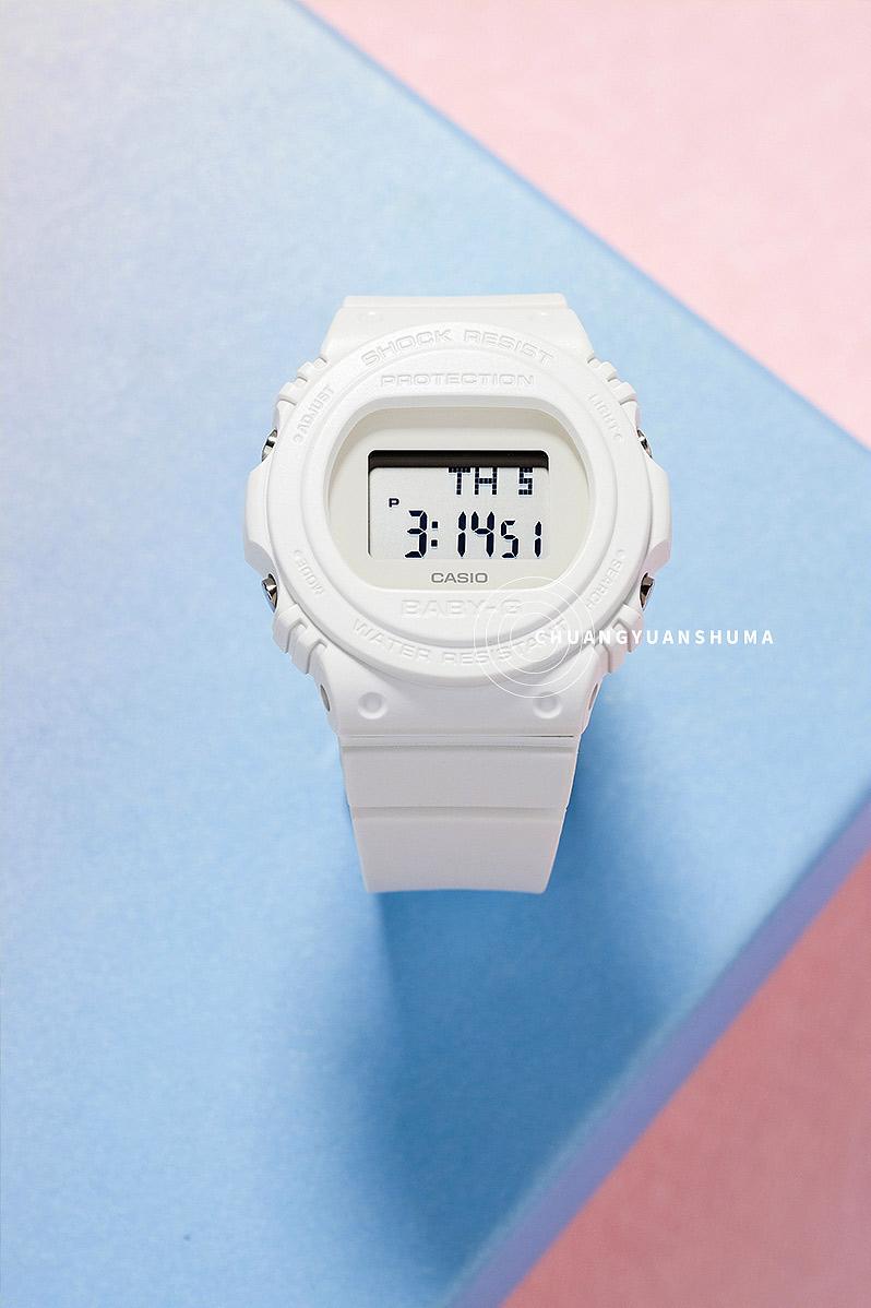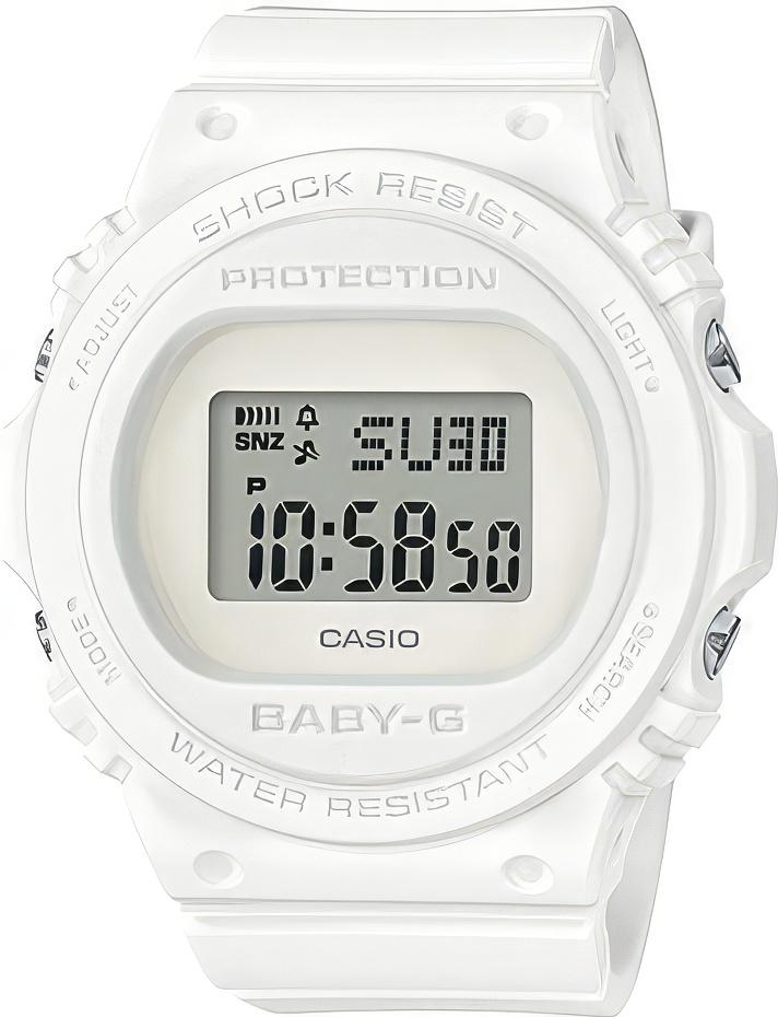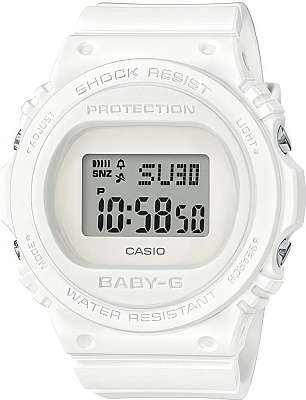 Женские наручные часы Casio Baby-G BGD-570-7E. Точный кварцевый механизм. Полимерный корпус надежно защищает часы от механических повреждений. Светодиодная подсветка. На циферблате отображается текущее число, месяц и день недели. Ударопрочная конструкция часов защищает от ударов и вибрации. Функция хронографа. Полимерный ремешок. Натуральный полимерный материал является идеальным для изготовления ремешка благодаря своей чрезвычайной прочности и гибкости. Прочное, устойчивое к царапинам минеральное стекло защищает часы от повреждений.Часы являются водонепроницаемыми до 20 Бар. Ширина (с заводной головкой): 45мм. Толщина: 13мм. Гарантия: 2 года.