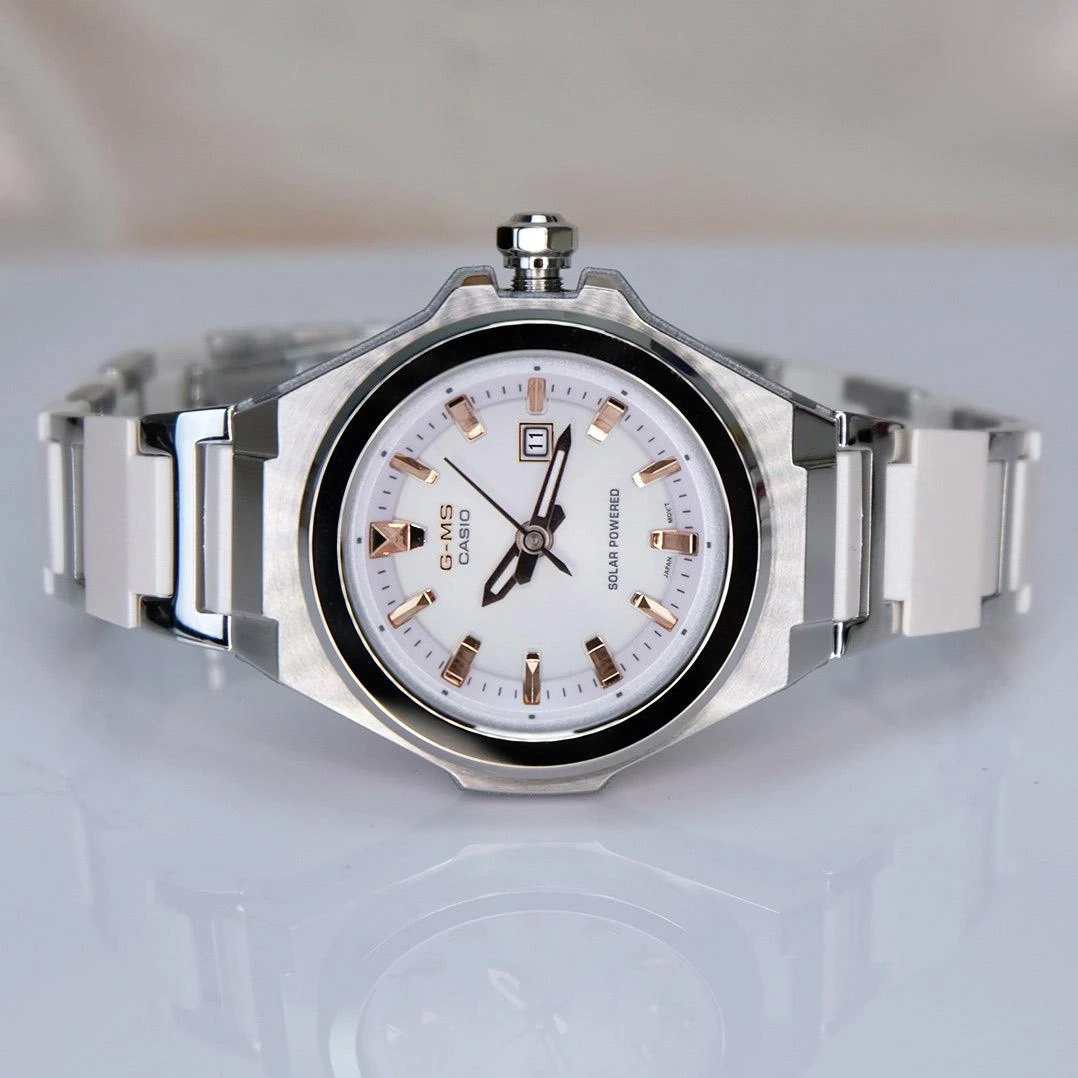 Женские наручные часы Casio Baby-G MSG-S500CD-7A. Точный кварцевый механизм с аналоговой индикацией. Полимерный ремешок. Натуральный полимерный материал является идеальным для изготовления ремешка благодаря своей чрезвычайной прочности и гибкости. Браслет из нержавеющей стали. Ударопрочная конструкция часов защищает от ударов и вибрации. Солнечная батарейка. Солнечная подзаряжающаяся батарейка обеспечивает питание часов для работы. Индикатор запаса хода. Браслет из нержавеющей стали. Прочное, устойчивое к царапинам минеральное стекло защищает часы от повреждений. На циферблате отображается текущее число месяца. Часы являются водонепроницаемыми до 10 Бар. Цвет циферблата: Серебристый. Цвет корпуса: Белый. Цвет корпуса: Серебристый. На стрелки и отметки нанесен светонакопительный состав, благодаря этому считывать информацию с циферблата возможно и в темноте. Толщина: 10 мм. Гарантия: 2 года.