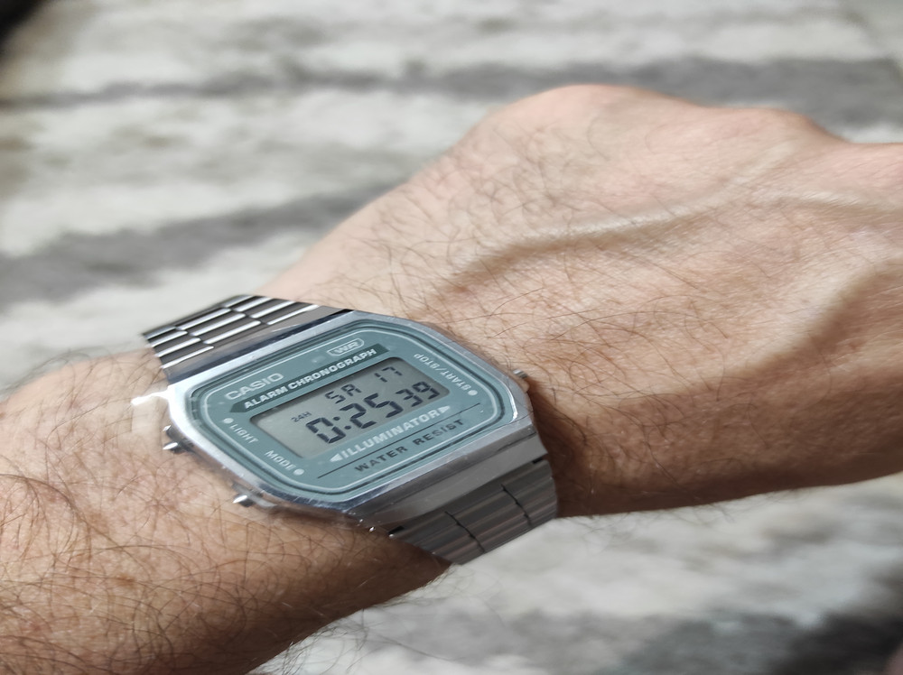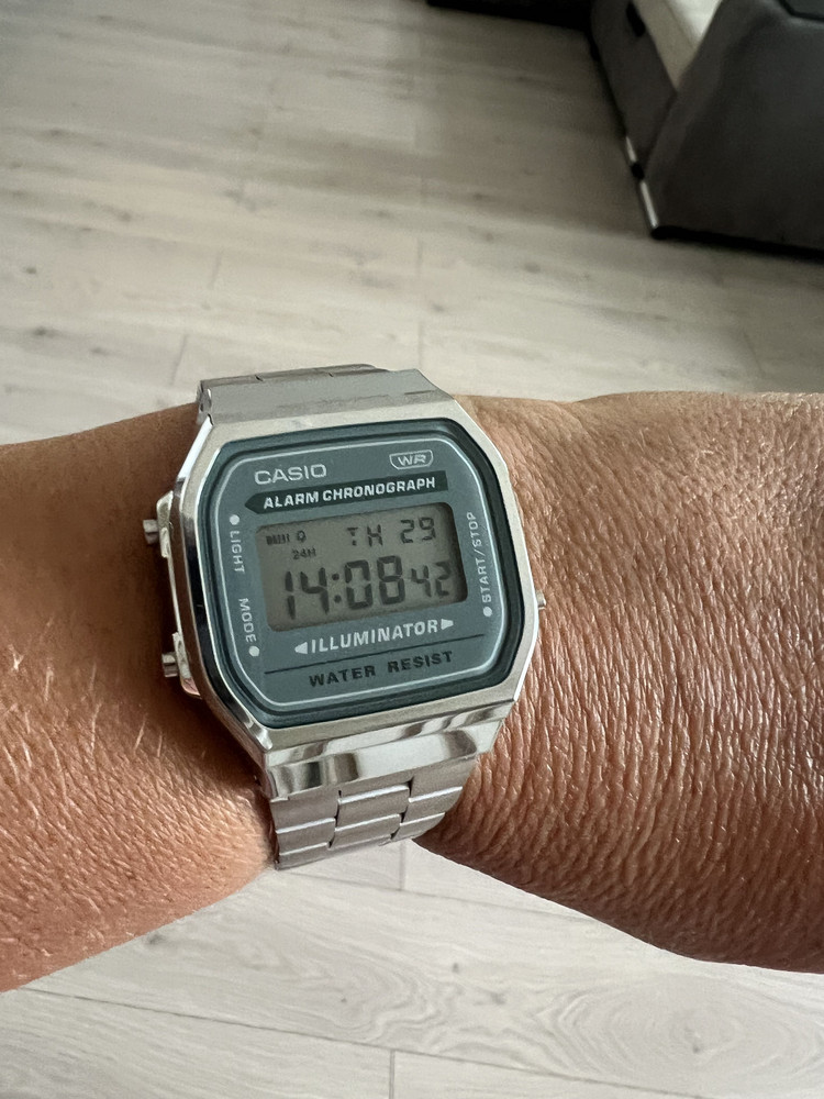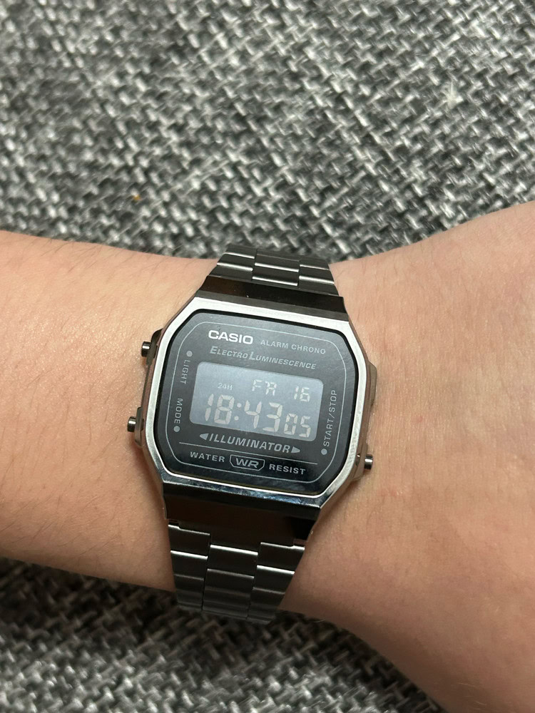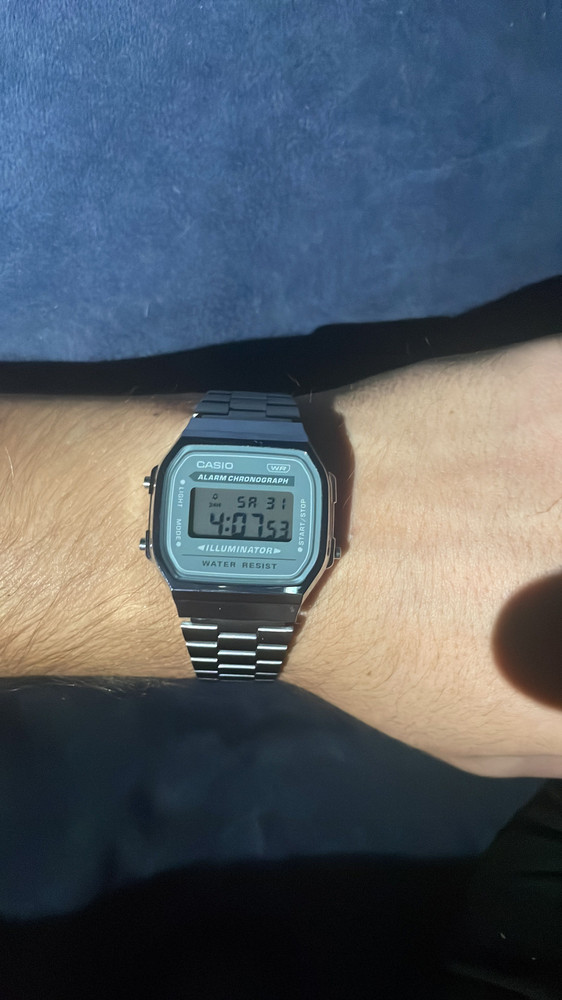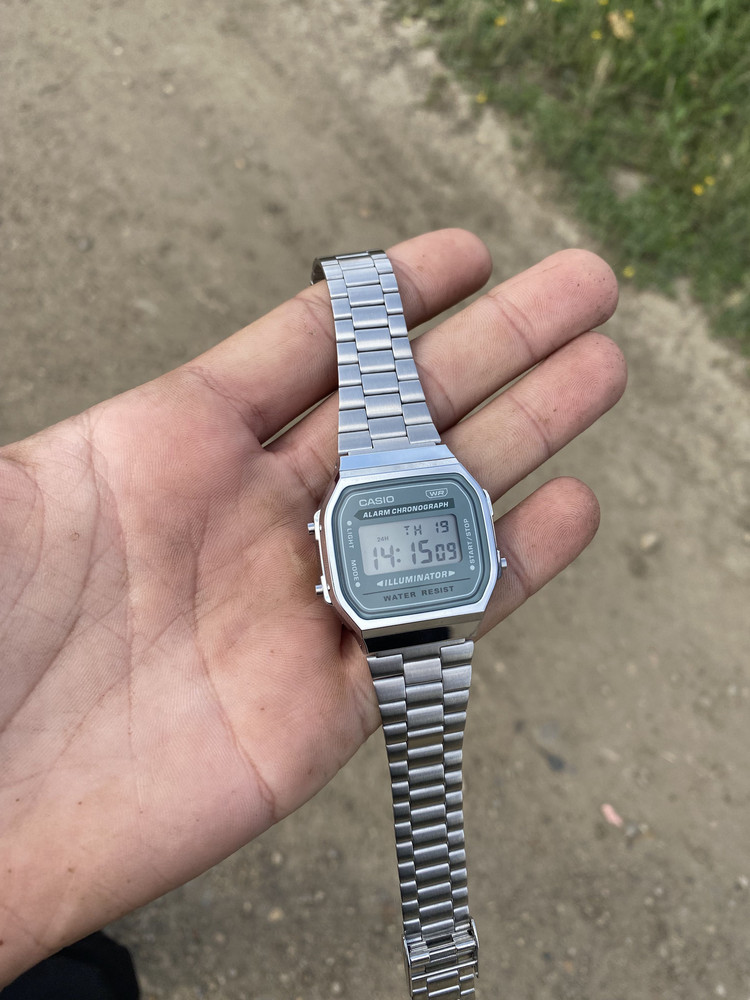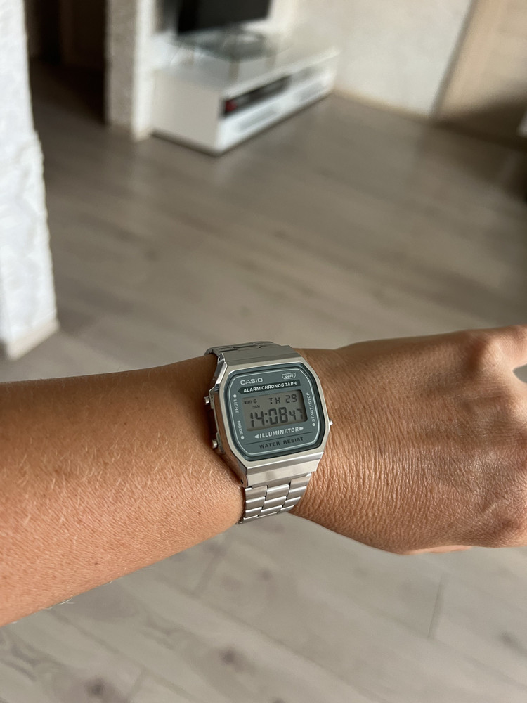 Мужские наручные часы Casio Collection A-168WA-3A. Точный кварцевый механизм с цифровой индикацей. Полимерный корпус надежно защищает часы от механических повреждений. Светодиодная подсветка. На циферблате отображается текущее число, месяц и день недели. Функция хронографа. Функция таймера. Таймеры обратного отсчета напомнят Вам о текущих или особенных событиях, издав звуковой сигнал в установленное время. Функция будильника. Аккумулятор обеспечивает часы достаточным питанием приблизительно на 7 лет. После настройки автоматический календарь всегда отображает точную дату. Браслет из нержавеющей стали. Органическое стекло. Часы являются водонепроницаемыми до 3 Бар. Цвет корпуса: Серебристый. Цвет циферблата: Зеленый. Ширина (с заводной головкой): 39мм. Толщина: 10мм. Гарантия: 2 года.