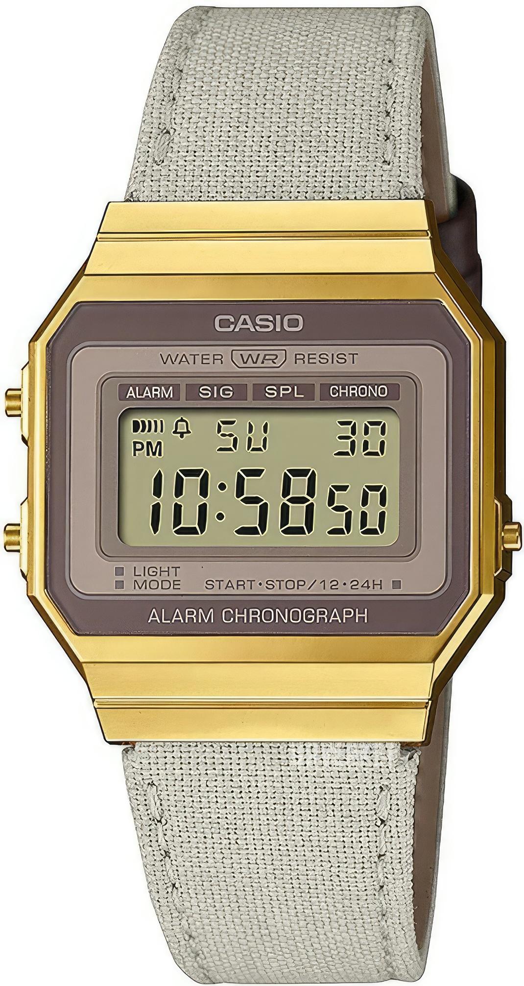 Мужские наручные часы Casio Collection A-700WEGL-7A. Точный кварцевый механизм с цифровой индикацией. Полимерный корпус надежно защищает часы от механических повреждений. Светодиодная подсветка. На циферблате отображается текущее число, месяц и день недели. Функция хронографа. Функция таймера. Таймеры обратного отсчета напомнят Вам о текущих или особенных событиях, издав звуковой сигнал в установленное время. Функция будильника. После настройки автоматический календарь всегда отображает точную дату. Функция хронографа. Функция таймера. Таймеры обратного отсчета напомнят Вам о текущих или особенных событиях, издав звуковой сигнал в установленное время. Функция будильника. После настройки автоматический календарь всегда отображает точную дату. Функция хронографа. Функция таймера. Таймеры обратного отсчета напомнят Вам о текущих или особенных событиях, издав звуковой сигнал в установленное время. Функция будильника. После настройки автоматический календарь всегда отображает точную дату. Текстильный ремешок. Прочное, устойчивое к царапинам минеральное стекло защищает часы от повреждений.Часы являются водонепроницаемыми до 3 Бар. Цвет корпуса: Желтое золото. Цвет циферблата: Коричневый. Ширина (с заводной головкой): 35мм. Толщина: 6мм. Гарантия: 2 года. Другие наименования модели: A700WEGL-7AEF, A700WEGL-7A.