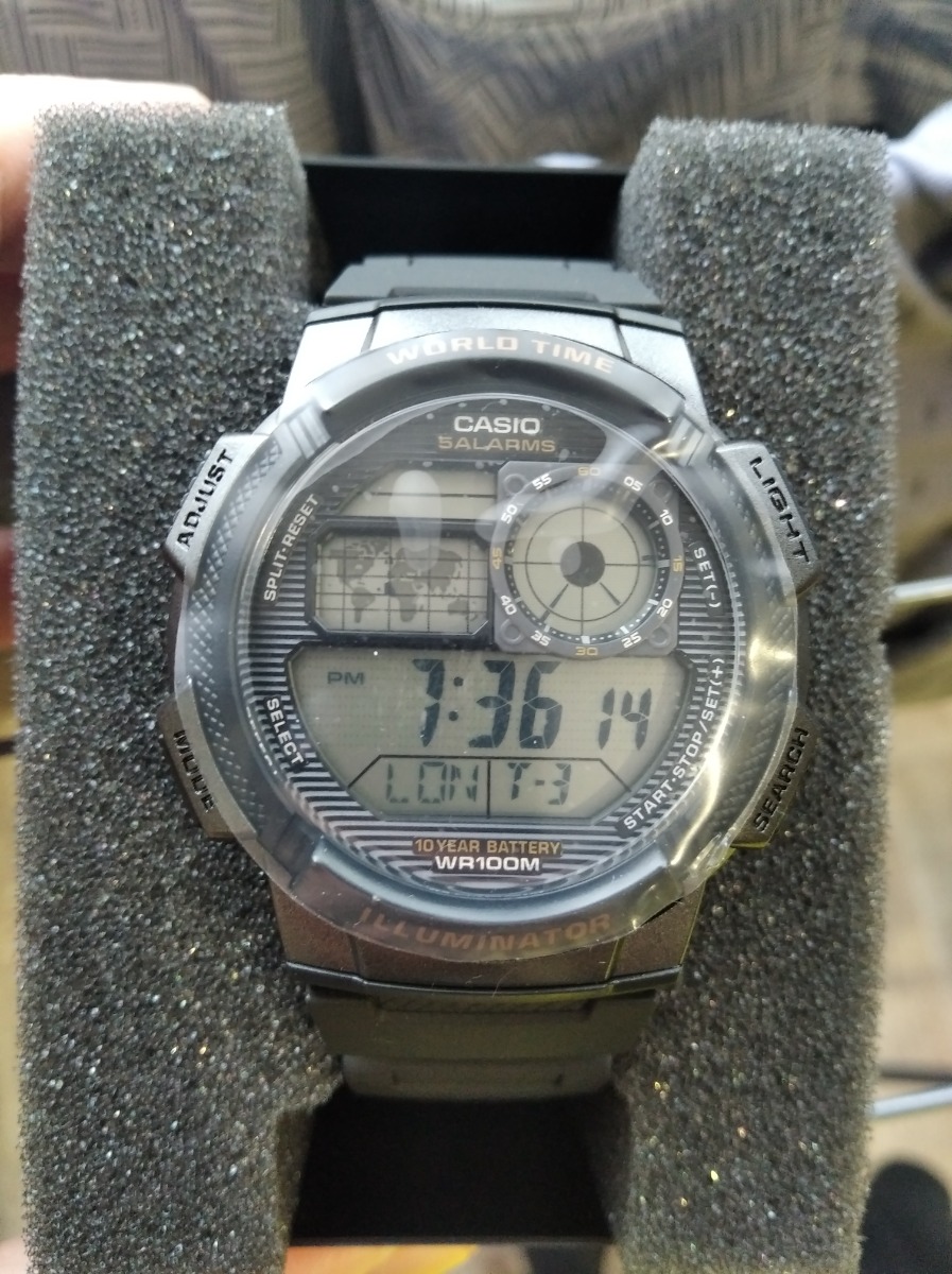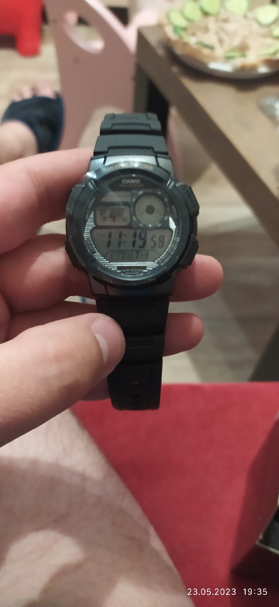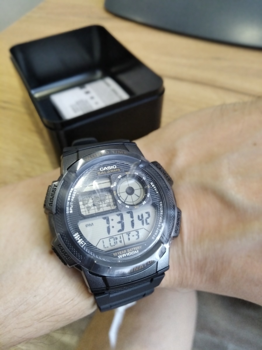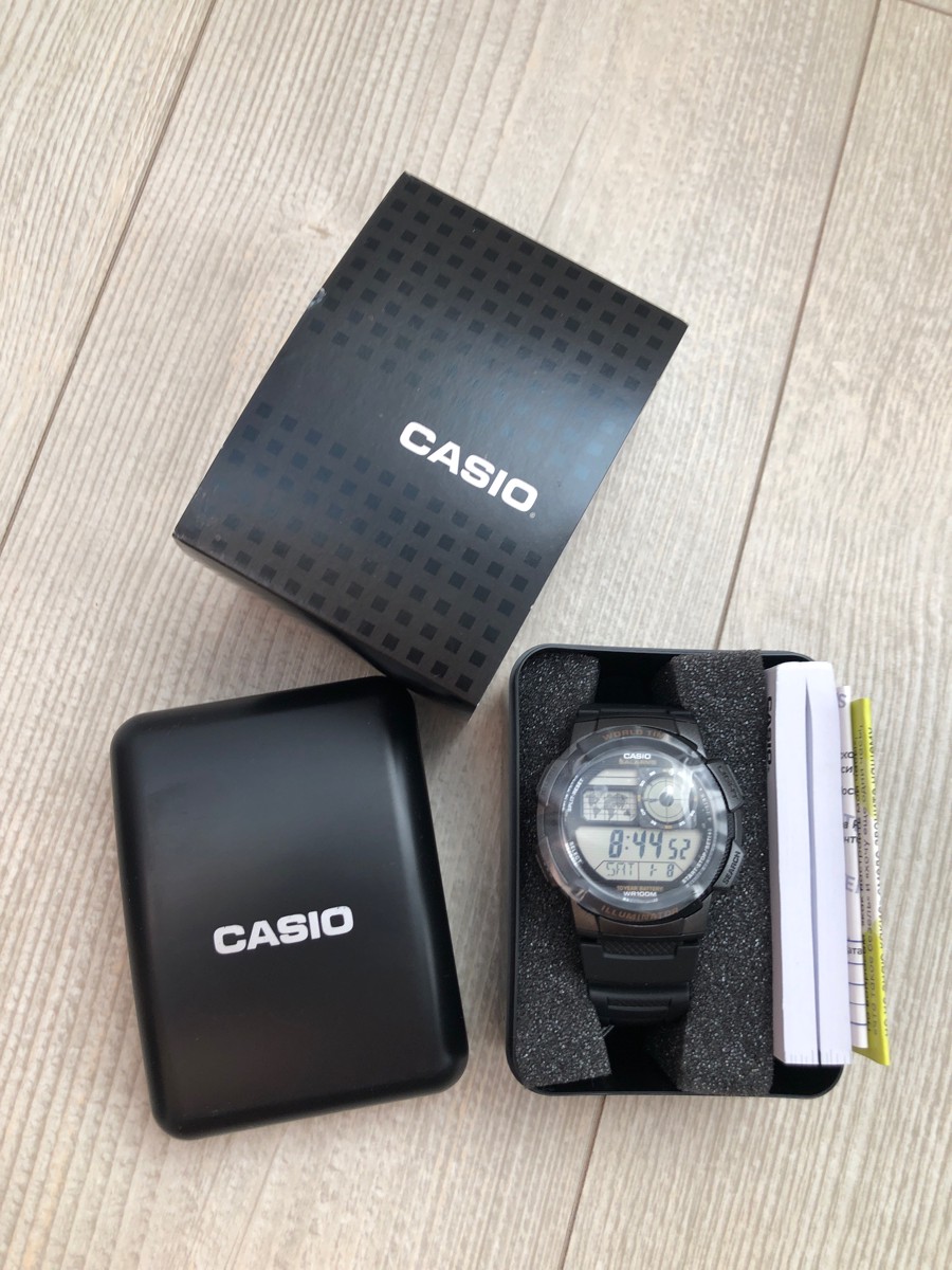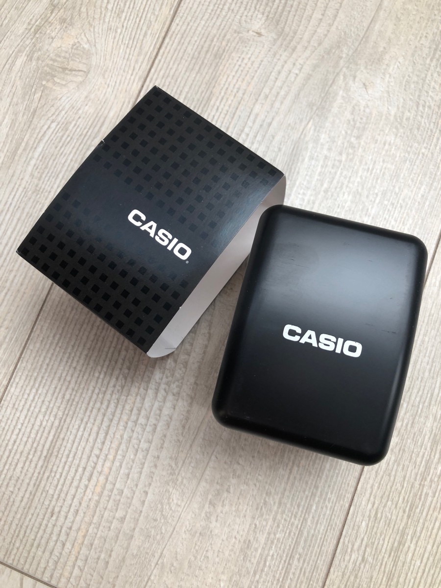 Часы пришли в пластмассовом футляре. Внутри, помимо часов индивидуальная бирка со штрихкодом, инструкция и гарантийный талон. Товар качественный, собирают в Китае, сам механизм - Япония. В данных часах 2 циферблата отображения времени - цифровой и маленький аналоговый, плюс карта мира с нанесением и возможностью выбора часовых поясов. Подсветка классическая оранжевая. Заказывал сыну подростку - он в восторге. У самого две модели Casio - классические со стрелками и электронные, ношу и радуюсь, очень практичные часы. Воды не боятся - плавал в речке, бассейне и под душем.