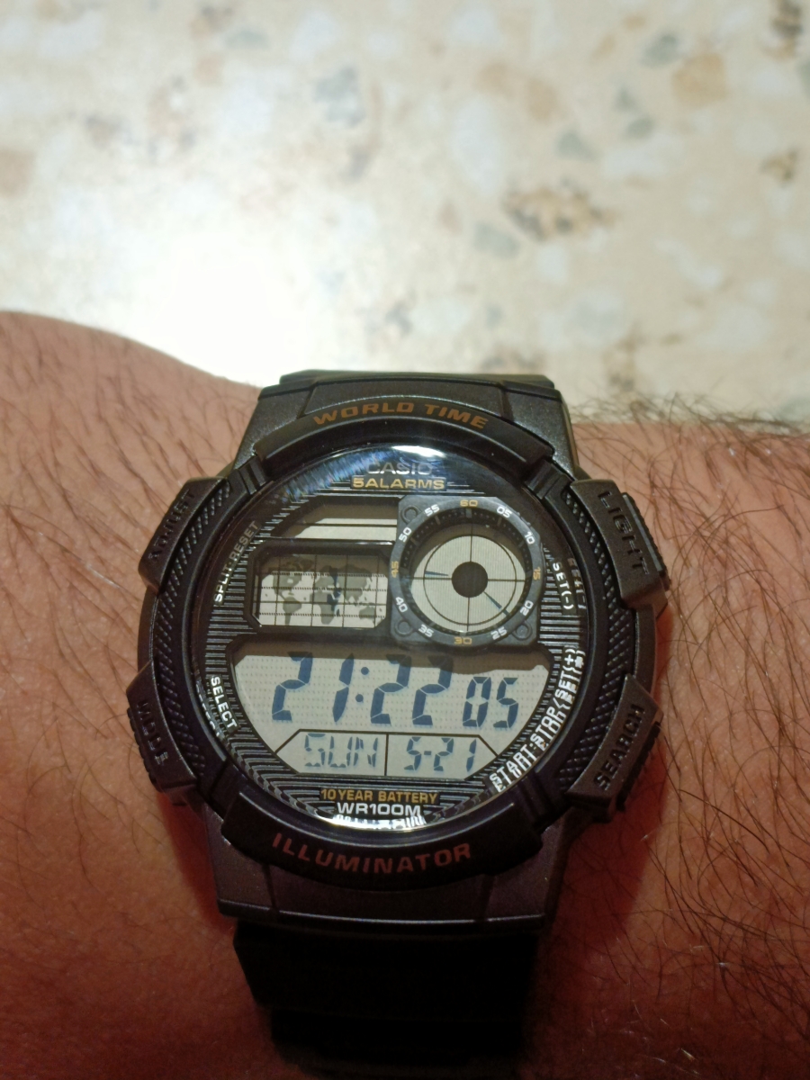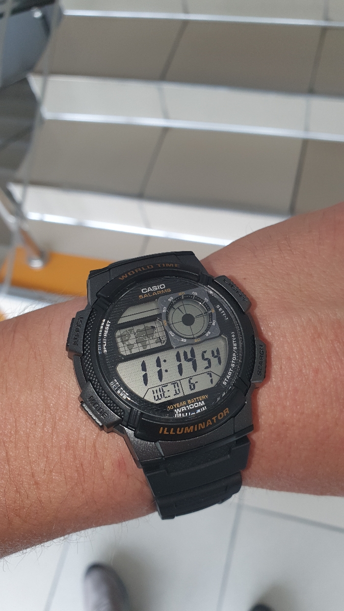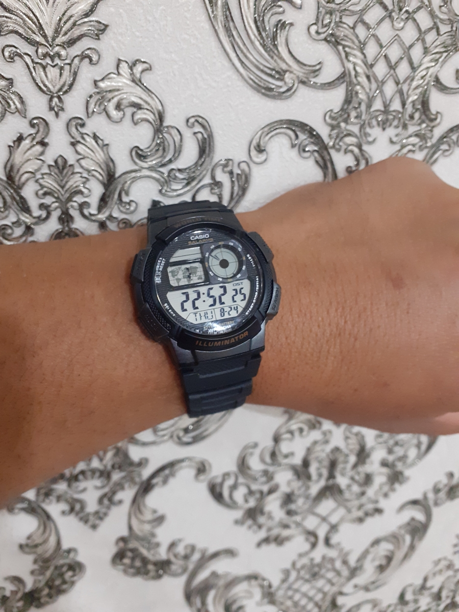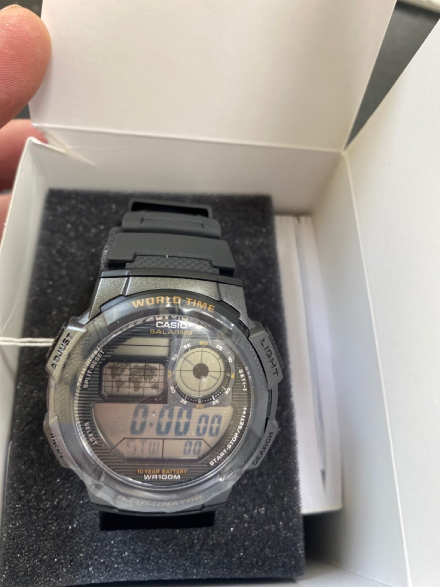 Часы пришли в пластмассовом футляре. Внутри, помимо часов индивидуальная бирка со штрихкодом, инструкция и гарантийный талон. Товар качественный, собирают в Китае, сам механизм - Япония. В данных часах 2 циферблата отображения времени - цифровой и маленький аналоговый, плюс карта мира с нанесением и возможностью выбора часовых поясов. Подсветка классическая оранжевая. Заказывал сыну подростку - он в восторге. У самого две модели Casio - классические со стрелками и электронные, ношу и радуюсь, очень практичные часы. Воды не боятся - плавал в речке, бассейне и под душем.
