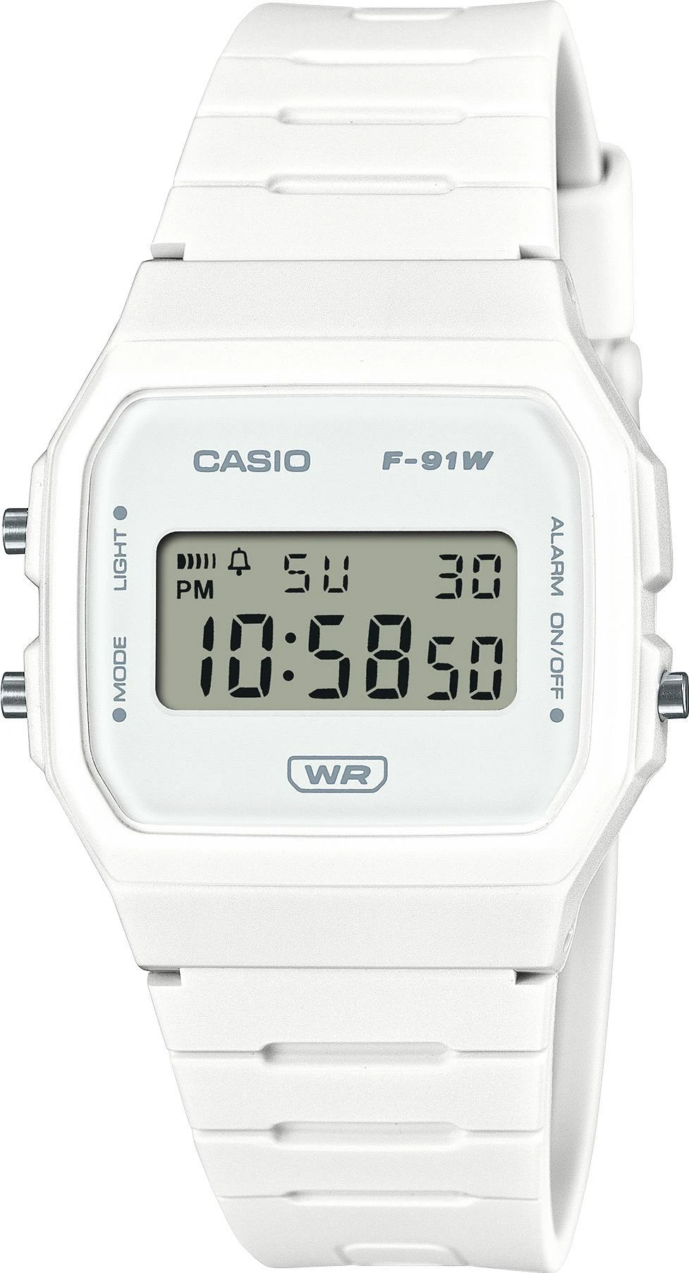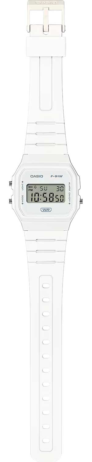 Унисекс наручные часы Casio Collection F-91WB-7A. Точный кварцевый механизм с цифровой индикацей. Полимерный ремешок. Натуральный полимерный материал является идеальным для изготовления ремешка благодаря своей чрезвычайной прочности и гибкости. Отображение текущего времени в основных городах и конкретных областях по всему миру. Функция будильника. Функция хронографа. Функция таймера. Таймеры обратного отсчета напомнят Вам о текущих или особенных событиях, издав звуковой сигнал в установленное время. Для подсветки дисплея используется светодиод, а так же имеет функцию автоматического включения подсветки, если Вы наклоните часы к своему лицу. После настройки автоматический календарь всегда отображает точную дату. Отображение времени возможно в 12-часовом или 24-часовом формате. Полимерный ремешок. Натуральный полимерный материал является идеальным для изготовления ремешка благодаря своей чрезвычайной прочности и гибкости. Органическое стекло. На циферблате отображается текущее число, месяц и день недели. Часы являются водонепроницаемыми до 3 Бар. Цвет циферблата: Белый. Цвет корпуса: Белый. Светодиодная подсветка. Высота (с ушками): 39 мм. Толщина: 9 мм. Гарантия: 2 года.