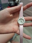 Искала детские часы с ремешком из натуральной кожи. Пока не проверяли в носке, батарейка вставлена, часы идут правильно. Очень симпатичный циферблат, бледно розовый тонкий ремешок, надеюсь, будет удобно ребенку.