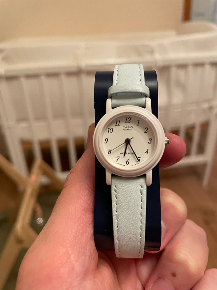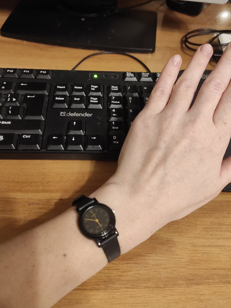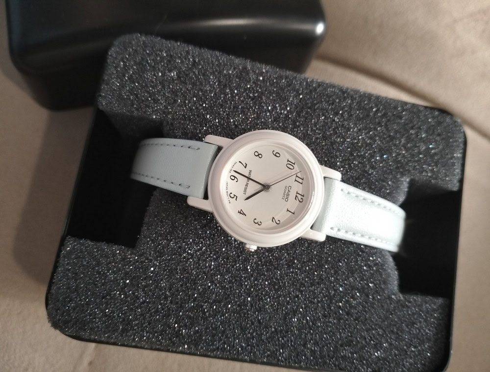 Чудесные маленькие часика, ничего лишнего. Очень аккуратно смотрятся на тонкой руке. Упаковка, гарантий талон, всё в комплекте