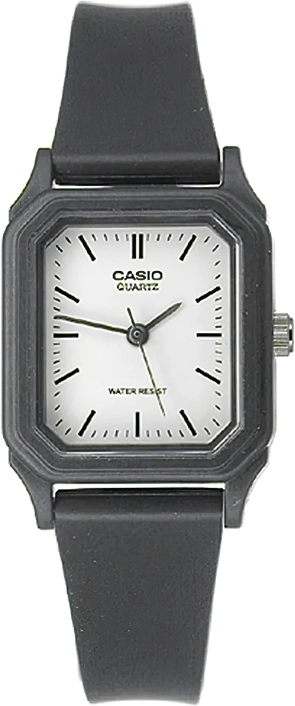 Женские наручные часы Casio Collection LQ-142-7E. Точный кварцевый механизм с аналоговой индикацией. Полимерный корпус надежно защищает часы от механических повреждений. Полимерный ремешок. Натуральный полимерный материал является идеальным для изготовления ремешка благодаря своей чрезвычайной прочности и гибкости. Органическое стекло. Часы являются водонепроницаемыми до 3 Бар. Цвет корпуса: Черный. Цвет циферблата: Белый. Ширина (с заводной головкой): 25мм. Толщина: 7мм. Гарантия: 2 года.