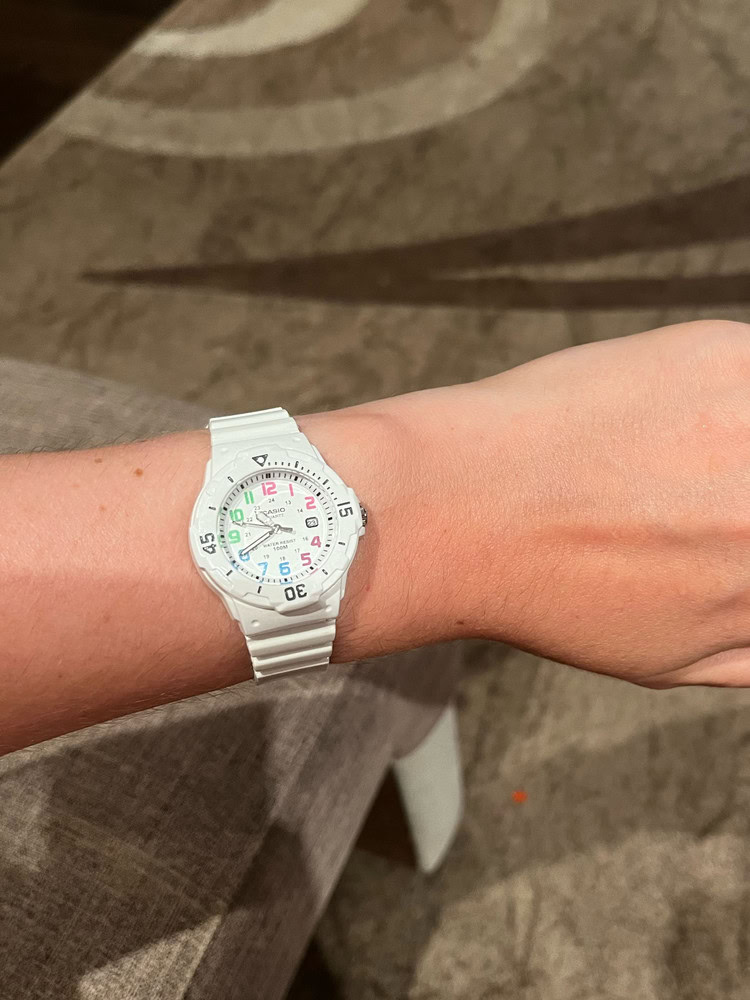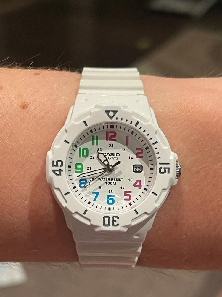 Любимые мои часы, дети теряют, вот это уже 4 -ые касио. Размер отлично подходит на мою руку, можно плавать и мыть руки.