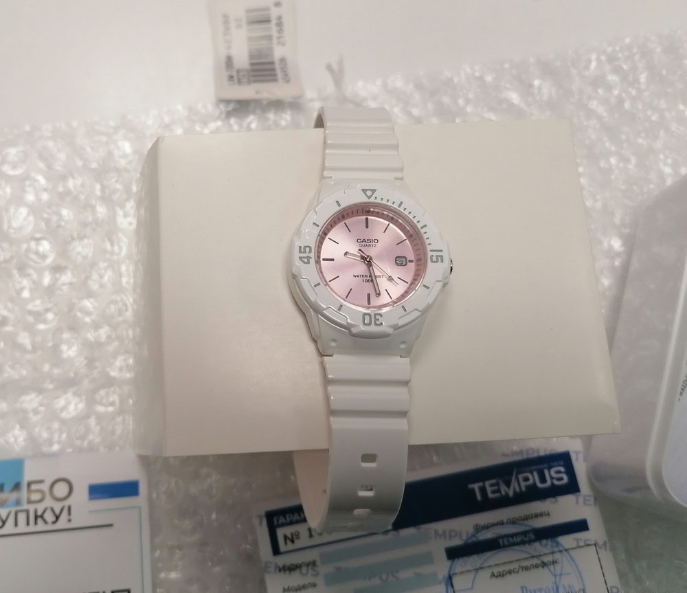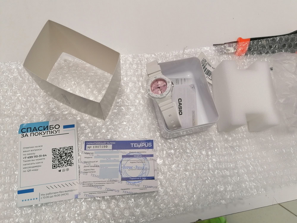 И получили то, на что расчитывали. Упаковано в пакет и несколько слоев пупырки. Гарантийный талон, инструкция (правда без русского языка), футляр и конечно красивые часы. Все в комплекте. Дочь - подросток довольна. На руке смотрятся стильно. Небольшой минус - часовые индексы не светятся в темноте, только стрелки.