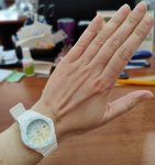 На руку подростку или молодой девушке. Если же у вас широкое запястье перед покупкой замерте, не больше 18см. Или придётся менять ремешок, сам ремешок от 18мм до 16мм, но посадочное по шпилькам 14мм.