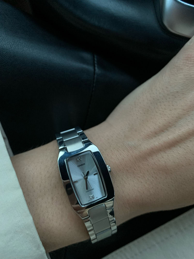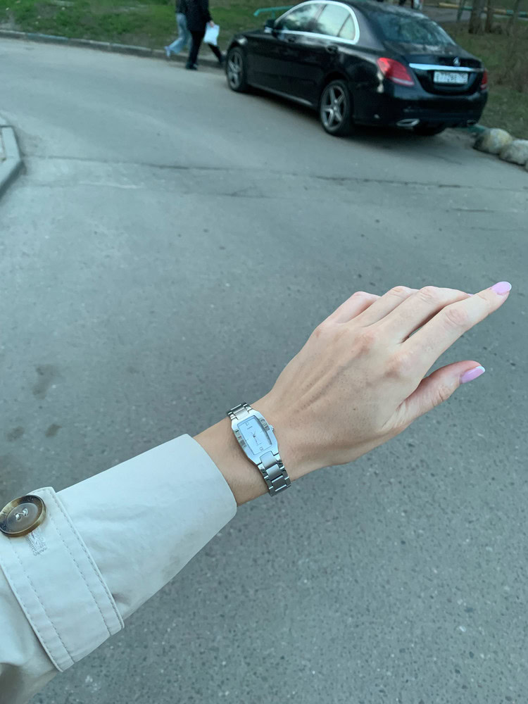 Женские стильные часы с современным дизайном для деловых встреч и свободного образа жизни. Есть парные мужские модели. Прямоугольный корпус из металла и стальной браслет, возможно IP-покрытие. Выпуклое минеральное стекло. Точный кварцевый механизм.