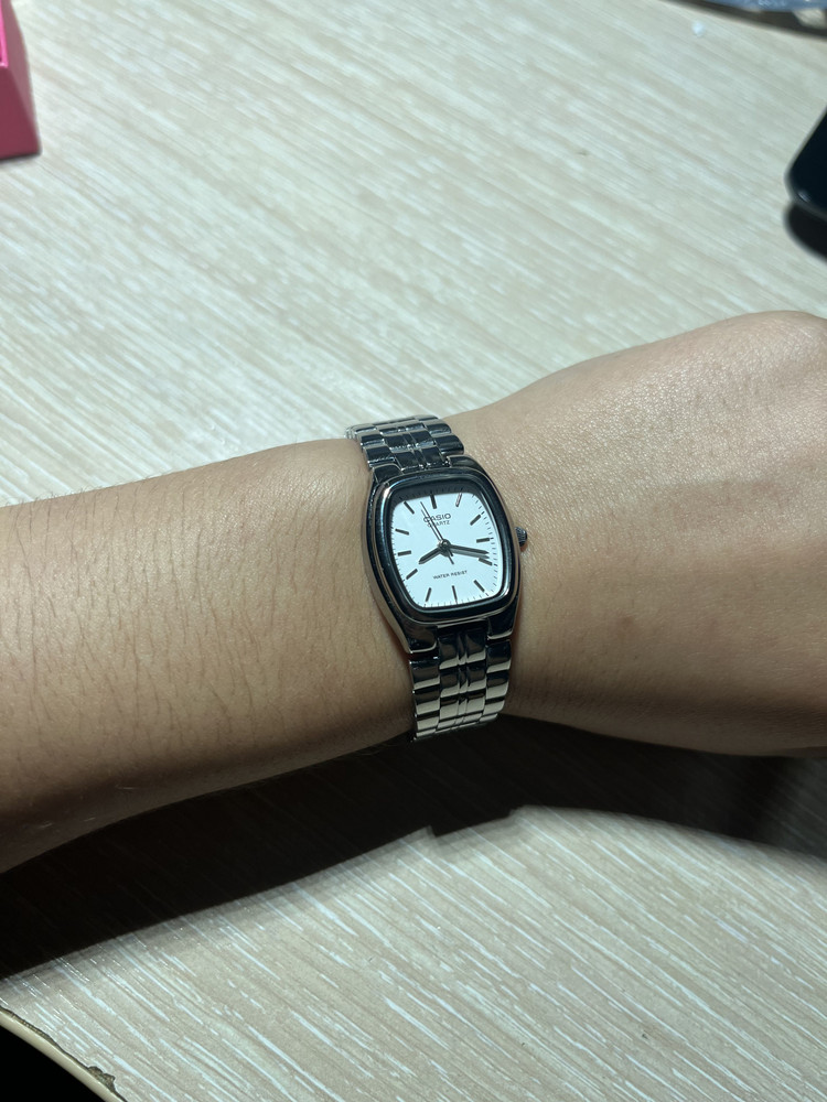 Часы очень милые к любому луку, смотрятся дорого, на тонкое запястье идеально (уменьшала)