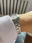 часики превосходные, на руке смотрятся красиво, не громоздко, размеры 28*32, браслет большеват для узкой руки 20 см, можно и самим убрать пару звеньев, на белом циферблате цыфры смотрятся четко, не отблескивает, доставка была быстрая, хорошо упакована коробка в пакете и еще в пакеты с пупыркой чтобы не повредить упаковку