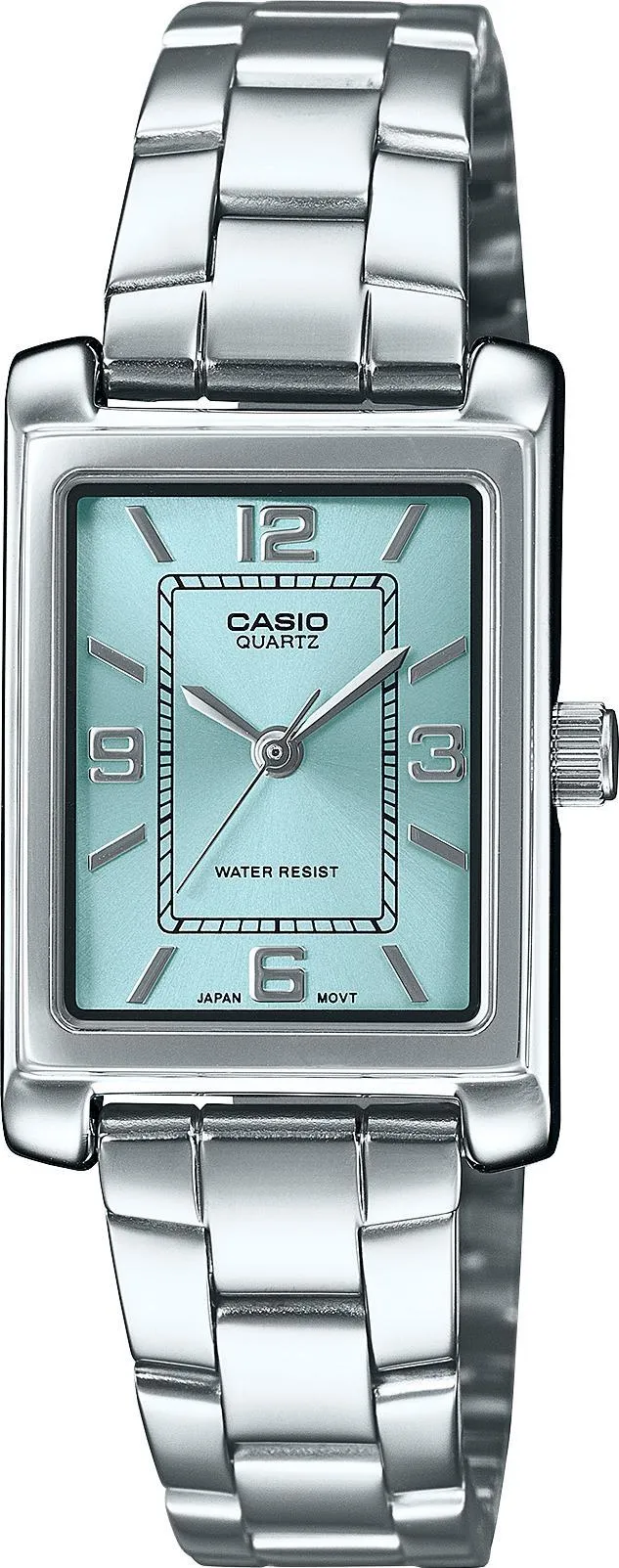 Женские наручные часы Casio Collection LTP-1234DD-2A. Точный кварцевый механизм с аналоговой индикацией. Браслет из нержавеющей стали. Браслет из нержавеющей стали. Прочное, устойчивое к царапинам минеральное стекло защищает часы от повреждений. Часы являются водонепроницаемыми до 3 Бар. Цвет циферблата: Серебристый. Цвет корпуса: Голубой. Высота (с ушками): 32 мм. Толщина: 7 мм. Гарантия: 2 года.