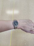 Удалили несколько звеньев. Циферблат достаточно большой, но на тонкой руке смотрятся очень достойно и дорого.