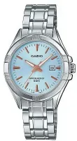 Женские наручные часы. Корпус и браслет металлического цвета. Часовая и минутная стрелки покрыты светоотражающим составом. Циферблат нежно-голубого цвета. окошко даты в позиции 3-х часов. Заводная головка с защитой.