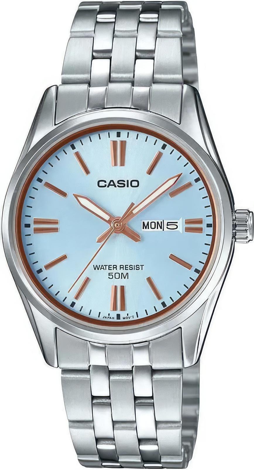 Женские наручные часы Casio Collection LTP-1335D-2A. Точный кварцевый механизм с аналоговой индикацией. Корпус изготовлен из высококачественной нержавеющей стали 316L с высокими антикоррозийными свойствами. На стрелки и отметки нанесен светонакопительный состав, благодаря этому считывать информацию с циферблата возможно и в темноте. На циферблате отображается текущее число месяца и день недели. Браслет из нержавеющей стали. Прочное, устойчивое к царапинам минеральное стекло защищает часы от повреждений. Часы являются водонепроницаемыми до 5 Бар. Цвет корпуса: Серебристый. Цвет циферблата: Синий. Ширина (с заводной головкой): 44мм. Толщина: 10мм. Гарантия: 2 года.