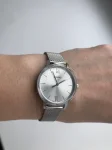 Женские часы в универсальном традиционном стиле. Круглый корпус и плетеный миланский браслет из нерж. стали с IP-покрытием. Минеральное стекло. Циферблат с часовыми метками и римским цифрами. Водозащита от брызг. Точный кварцевый механизм.