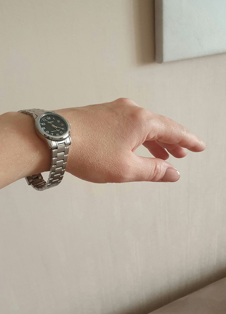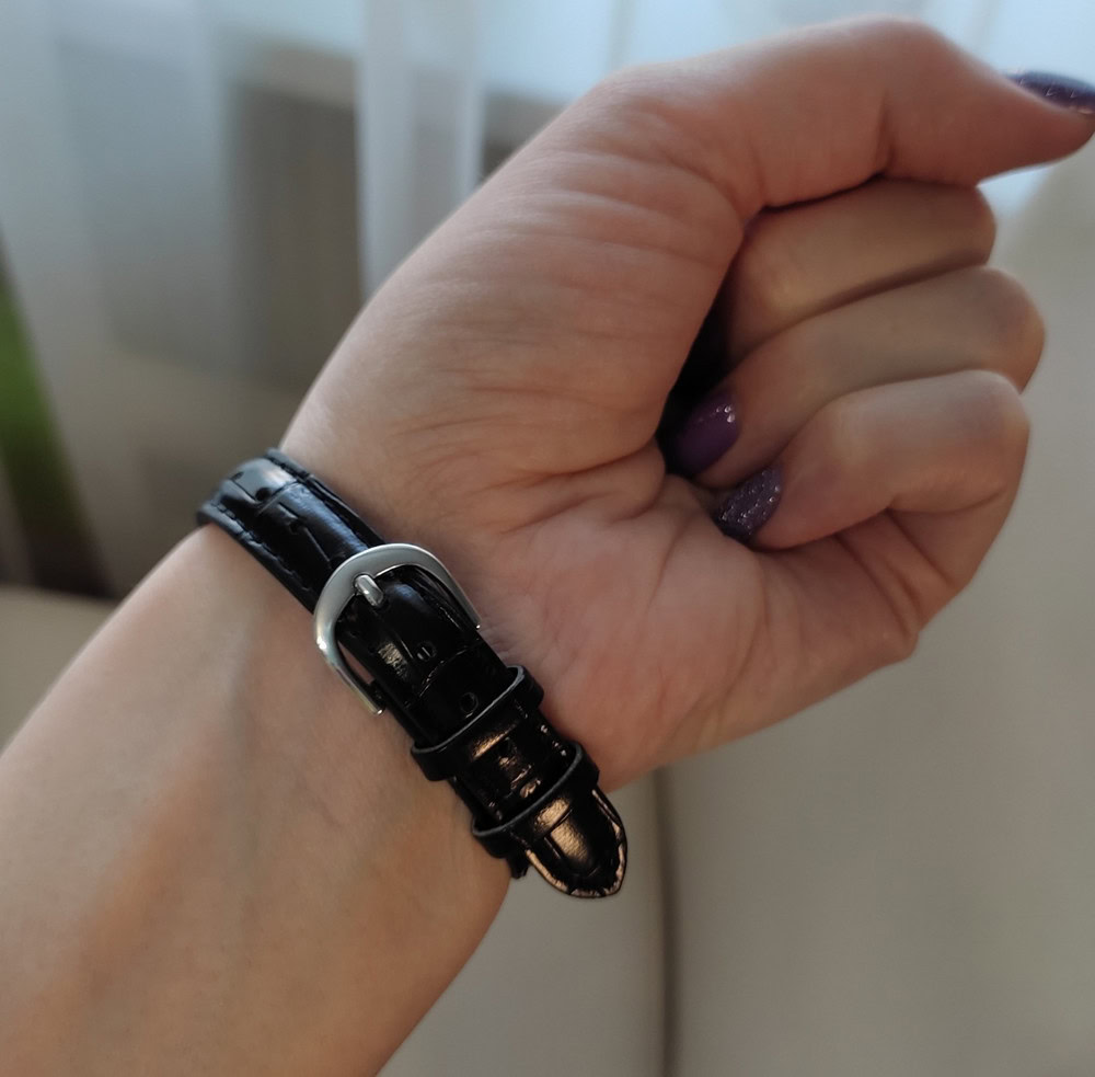 Часики очень симпатичные, на тонкую руку, ремешок тоже не длинный. Качество фоток только подвело