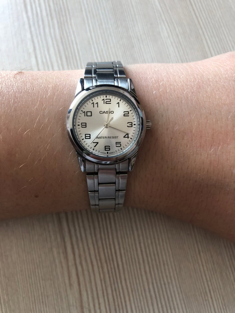 Часики хорошо смотрятся. Запястье у меня тонкое, поэтому хотела что-то лёгкое, изящное.