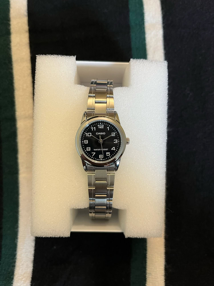 Женские наручные часы Casio Collection LTP-V001L-1B. Точный кварцевый механизм с аналоговой индикацией. Корпус изготовлен из высококачественной нержавеющей стали 316L с высокими антикоррозийными свойствами. Ремешок изготовлен из кожи. Прочное, устойчивое к царапинам минеральное стекло защищает часы от повреждений. Часы являются водонепроницаемыми до 3 Бар. Цвет корпуса: Серебристый. Цвет циферблата: Черный. Ширина (с заводной головкой): 25мм. Толщина: 8мм. Гарантия: 2 года.
