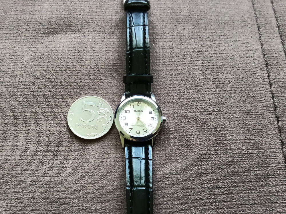 Часы хорошие,красивые,футляр большой пластиковый с документами,стекло отличное,ремешок-неплохой,на кожу не сильно похож,но есть одно-но. МАЛЕНЬКИЕ. Не соответствуют пропорции на фотографии. На женскую руку подошли хорошо,но маленький циферблат.